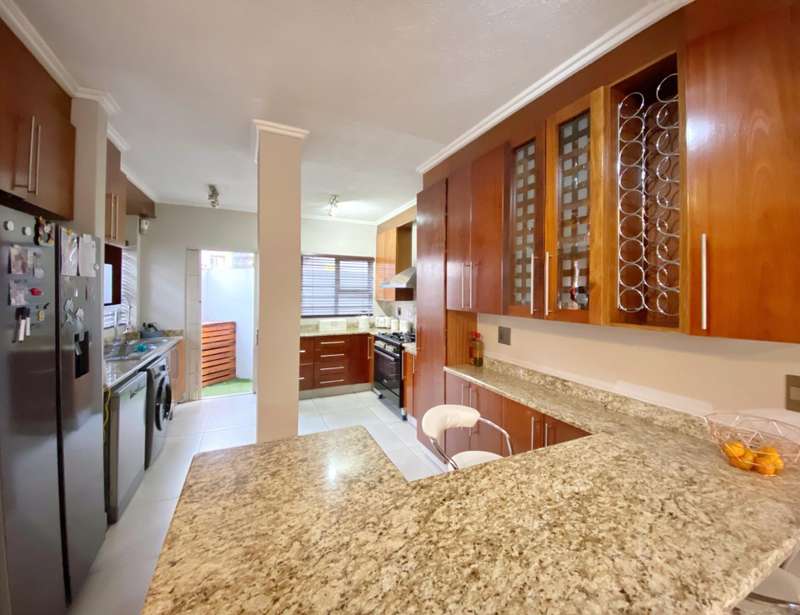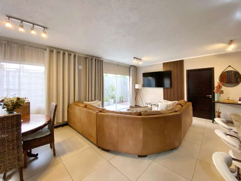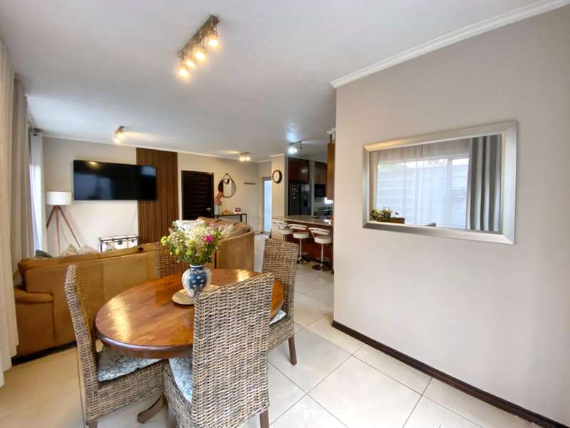 Welcome to this beautifully renovated cluster-style family home set in a sought-after complex offering 24-hour security and featuring backup solar power! Step inside and be greeted by a light-filled open-plan living area that has been tastefully renovated, seamlessly blending the lounge, dining, and kitchen spaces. The layout is ideal for both relaxed family living and effortless entertaining. The kitchen offers generous cupboard space with space for appliances, a gas stove and granite tops throughout. The open plan reception areas flow effortlessly onto the outdoors where you?ÇÖll find a low maintenance, private garden designed for easy living and year-round enjoyment. The outdoors spaces are ideal for those who appreciate greenery without the hassle of heavy upkeep. This family home boasts 3 spacious bedrooms, including a well-designed main bedroom with its own en suite bathroom, as well as a second modern bathroom to accommodate family or guests. Set within a well-managed complex, and also featuring staff accommodation, this home offers the peace of mind of 24-hour security, ensuring safety and convenience in a tranquil setting whilst offering a lock-up-and-go option for modern families, professionals, or those seeking a stylish, secure lifestyle.