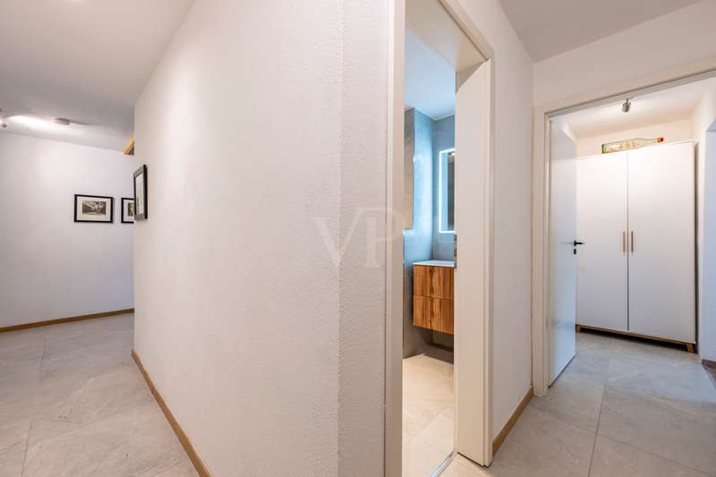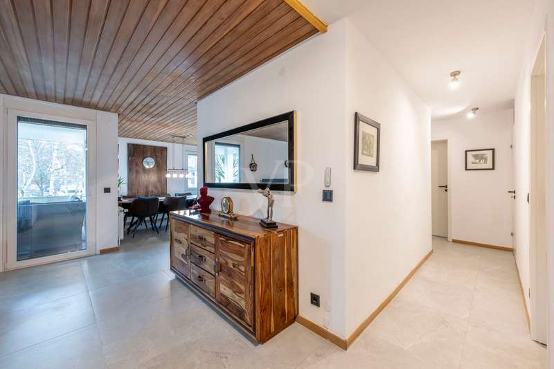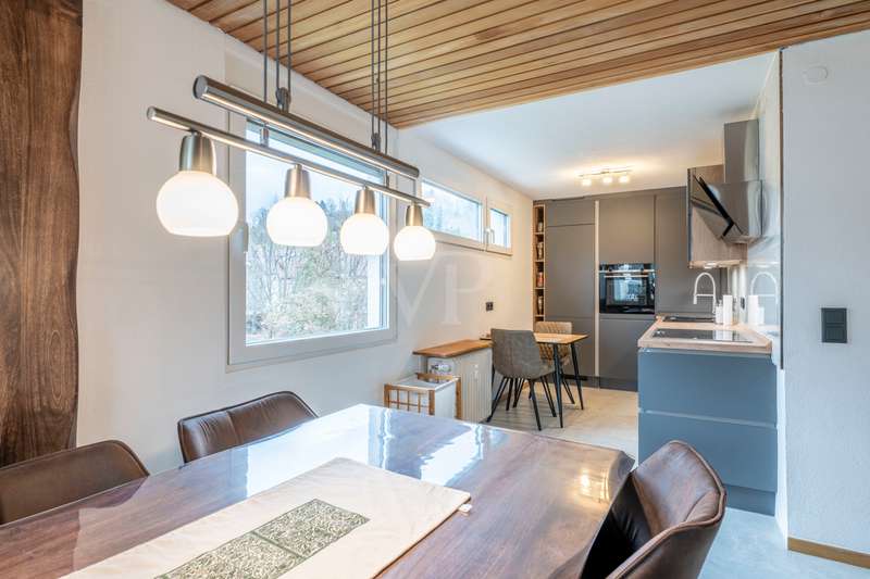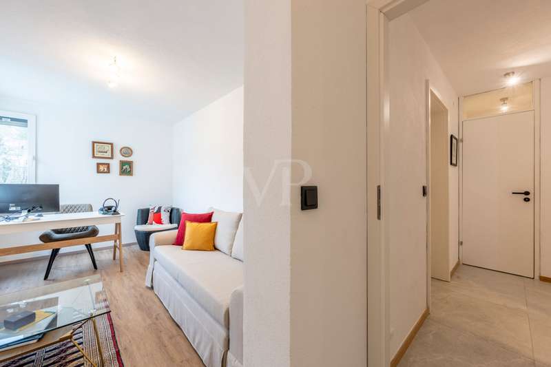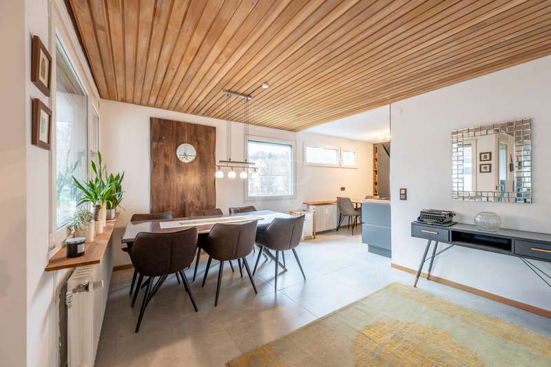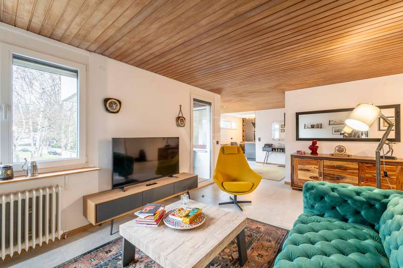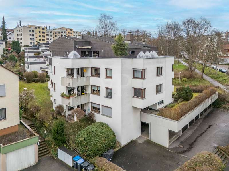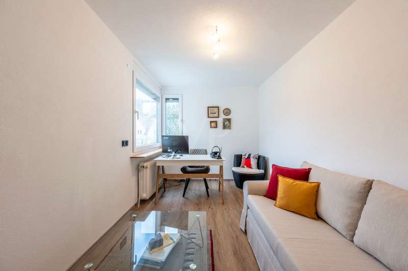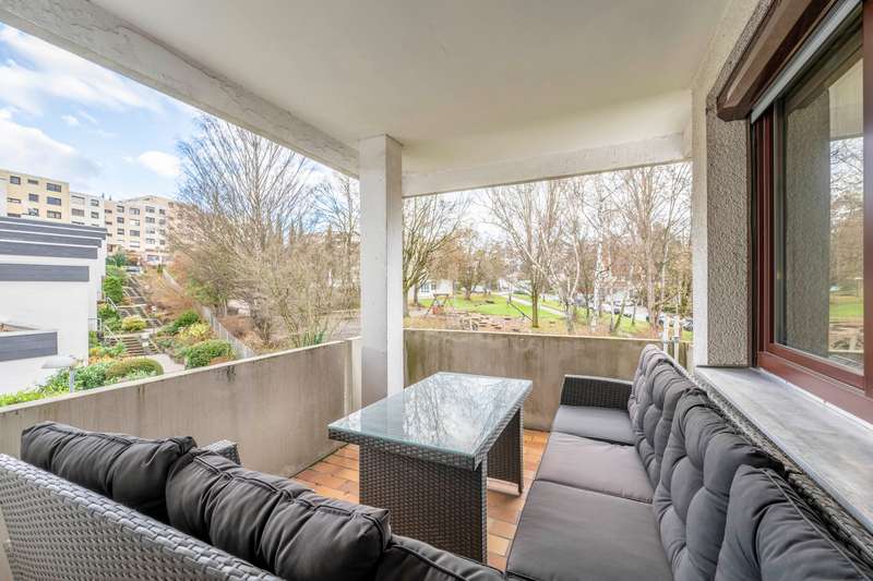 This high-quality 3.5-room apartment in the heart of a sought-after residential area offers you a modern and comfortable living experience on approx. 91 m² of living space. The property was built in 1972 and extensively renovated in 2023 to meet today's living standards. All electrical wiring, water pipes, windows including electric shutters, floors, doors, the bathroom, the guest WC and the interior fittings were completely renewed. These measures ensure that you will find a property in top condition that is ready to move into immediately. Upon entering the apartment, you are greeted by a bright and spacious living area that invites you to connect and communicate thanks to its well thought-out floor plan. The modern and open-plan kitchen, which is included in the rent, is directly integrated and offers high-quality fixtures and fittings as well as ample space for cooking evenings together. Large triple-glazed windows in the apartment ensure a light-flooded atmosphere and provide a pleasant view of the surrounding area. Two well-designed bedrooms offer plenty of space for your retreat. Here you will find the peace and relaxation you are looking for after a long day. An additional half-room expands your space in the storage area and offers further comfort in addition to the two cellar rooms in the basement of the house. The bathroom has been completely renovated and fitted with modern fixtures and fittings. It offers a spacious walk-in shower. The space is complemented by a separate guest WC, which has also been extensively modernized. The charming balcony invites you to spend sunny hours outdoors. This outdoor area extends your living space and offers room for sociable evenings or relaxing moments. The furnishings of the apartment can be described as upscale. In addition to the new windows, all shutters have been replaced and converted to electric operation to offer you maximum comfort. A single garage and a parking space in front of the garage are also included for an additional €120 per month - which represents considerable added value, especially in this popular residential area. This apartment combines modernity and functionality in an attractive location. It is ideal for couples or small families looking for a contemporary, stylish home. If you are interested in a viewing, we will be happy to show you the benefits of this property on site. We look forward to introducing you to this appealing apartment and helping you take the next step towards your new home. The property offered here is to be rented for a maximum of 4 years.