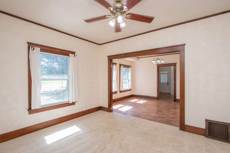 Enjoy small-town living with room to spread out on this rare in-town acreage featuring 3 acres and a move-in ready home! This property offers 3 bedrooms, including a spacious finished attic used as a non-conforming bedroom not counted in the square footage, and 1 full bath. Inside, youll find fresh paint throughout, beautiful original woodwork, walk-in closets, and the convenience of a stackable washer and dryer. Both the front and back entrances feature finished mudrooms, adding charm and functionality. Outside, enjoy a fenced pasture ready for hobbies or animals, along with a detached 2-car garage providing plenty of storage and workspace. With its character, updates, and space both indoors and out, this home is the perfect balance of small-town comfort and acreage livingready for you to move right in!