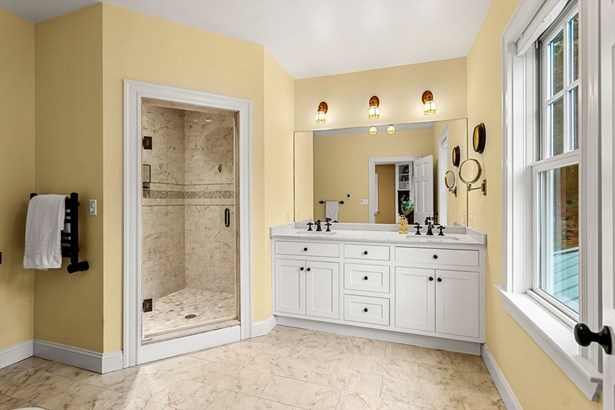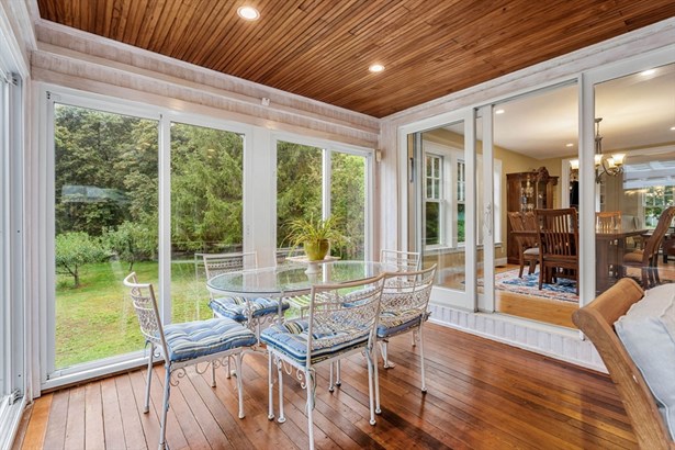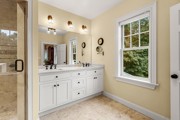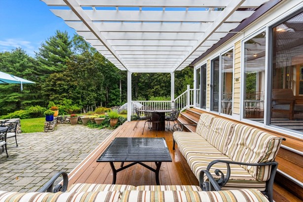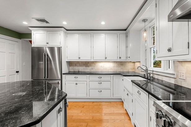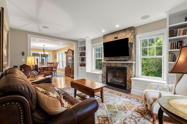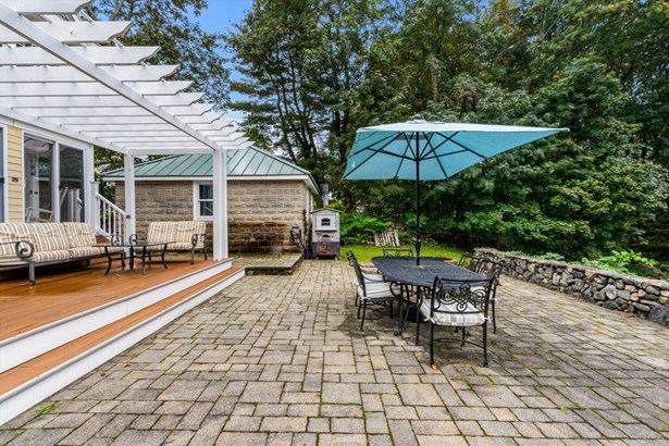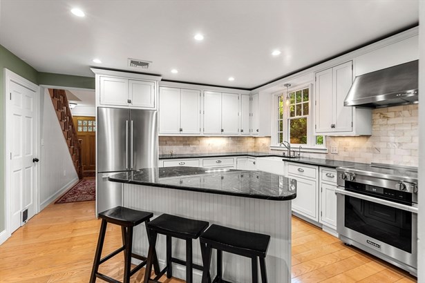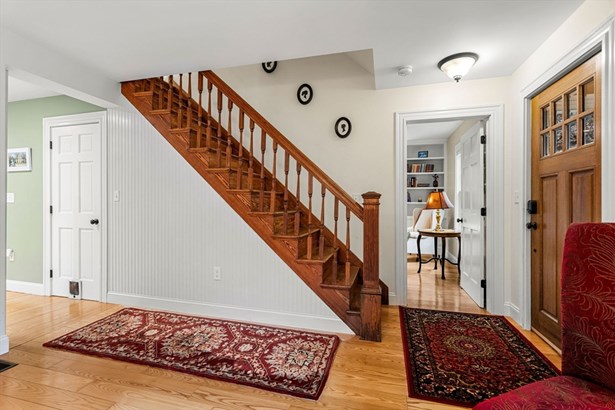 A Colonial Farmhouse, 2009 gut renovation and addition, located three blocks from Lexington Center. Set on a dead end street abutting acres of town owned conservation land with endless walking trails. This home sits on a 19,856 square foot lot and is being sold with an adjoining 34,356 sf totaling 54,212 sf of land. (The town has the 34,356 sq ft lot recorded as res undvlpble land. Buyers and buyer agents to perform their own due diligence on this matter. This 9 room house has formal living and dining rooms, country kitchen, and fireplace family room, mudroom with half bath and laundry. The second floor has 4 bedrooms and a hall bath with an Air Therapy Tub. The Primary ensuite has sliders to second story balcony, gas fireplace, walk in closet, a bath with bidet, oversized tiled shower and heated floor. The third floor is ready for your finishing touches - heat and air conditioning is completed. Large glass sun porch, pergola covered deck and a grand patio - Spectacular outdoors!