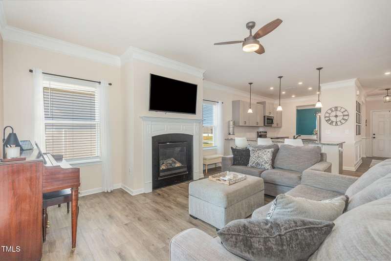 A Home that truly has It all! Located within a vibrant community offering resort-style amenities and a public golf course within walking distance. This stunning 3 bedroom, 2.5-bath home welcomes you with its warmth and elegance. Built in 2022 with custom upgrades throughout. This home is nestled in one of Johnston County's best-kept secrets: Four Oaks. Here, you'll enjoy rural living at its finest, less congestion, charming small-town appeal and incredible value. While benefiting from easy access to shopping, restaurants, farmers markets and everything that I-40 & 540 have to offer. The newly completed 540 loop makes commuting to RTP and RDU Airport a breeze, while quick access to I-95 ensures convenient travel. Inside, this meticulously designed home features a flex room with beautiful French doors making it an ideal home office, media room or a peaceful retreat. The inviting living room boasts a cozy fireplace perfect for relaxing and entertaining. Custom upgrades include upgraded window treatments, LVP flooring and crown molding. The heart of the home features an expansive open kitchen, perfect for gathering along with a formal dining room and a spacious living area that seamlessly flows onto a large screened porch. Step outside to a fully fenced yard with a durable vinyl fence, offering privacy and security while providing ample space for grilling, entertaining, or simply unwinding beneath breathtaking open skies and gorgeous sunsets. The first-floor primary suite provides ultimate convenience, featuring an ensuite bath walk in shower. Upstairs we have two additional bedrooms, a full bath, and a spacious loft area that offers endless possibilities. Whether it's a playroom, media space, or remote work setup (yes, high-speed internet is available!). Resort-style community amenities include an outdoor pool, cabana, playground and fishing pond, ensuring leisure and recreation are always within reach. Similar newer construction homes in this neighborhood-without these fantastic upgrades-are listed over $420k+, making this property an exceptional value. Come see why this beautifully upgraded home is the perfect place to call your own!