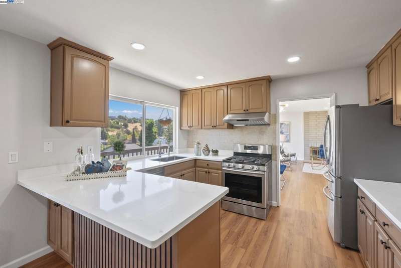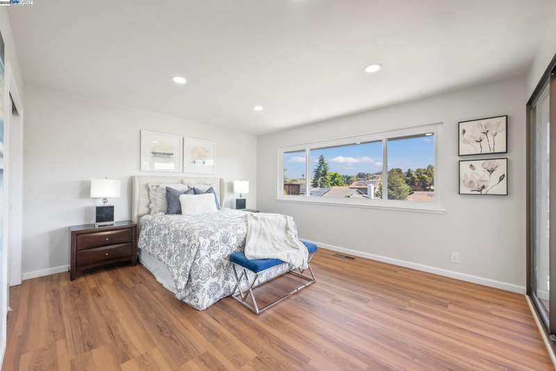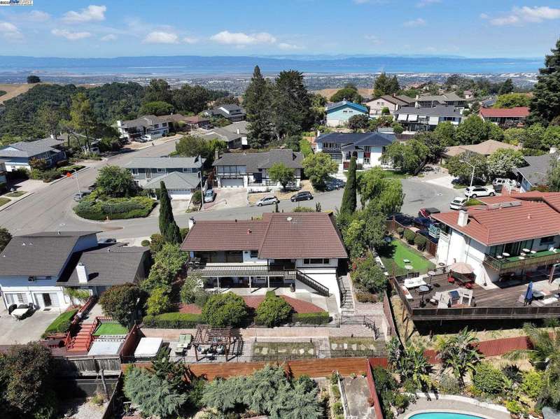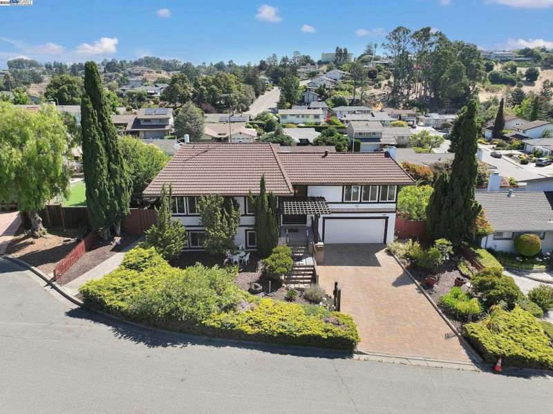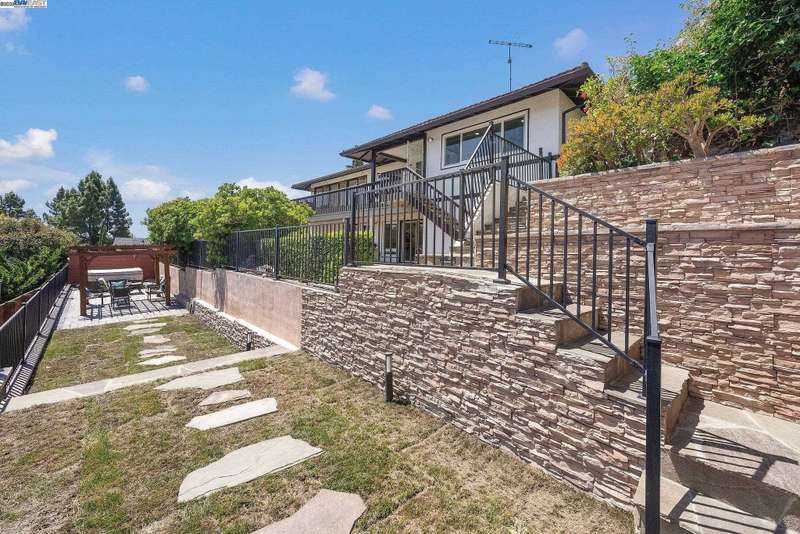Immaculately remodeled 5-bed, 3-bath Hayward Hills home perfect for modern families or savvy investors! The upper level features 3 bedrooms, 2 baths, and a bright, open-concept layout, while the lower level includes 2 bedrooms, 1 bath, a spacious family room, and a second full kitchen—ideal for extended family, guests, or rental income. Enjoy designer kitchens and baths, elegant flooring, and updated lighting throughout. Relax or entertain in the serene backyard with a private jacuzzi. Located on a quiet cul-de-sac near top schools, parks, hiking trails, and convenient freeway access. Turnkey and move-in ready, this rare property combines lifestyle, flexibility, and strong investment potential in the coveted Hayward Hills!