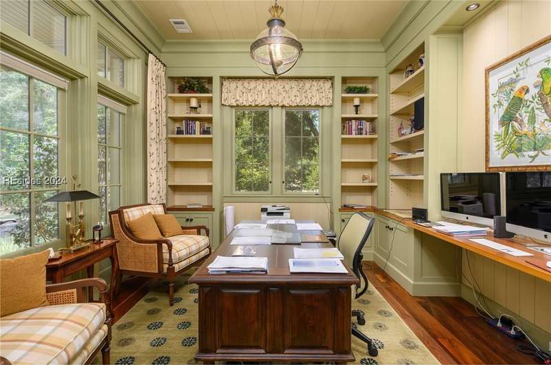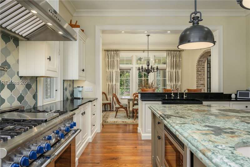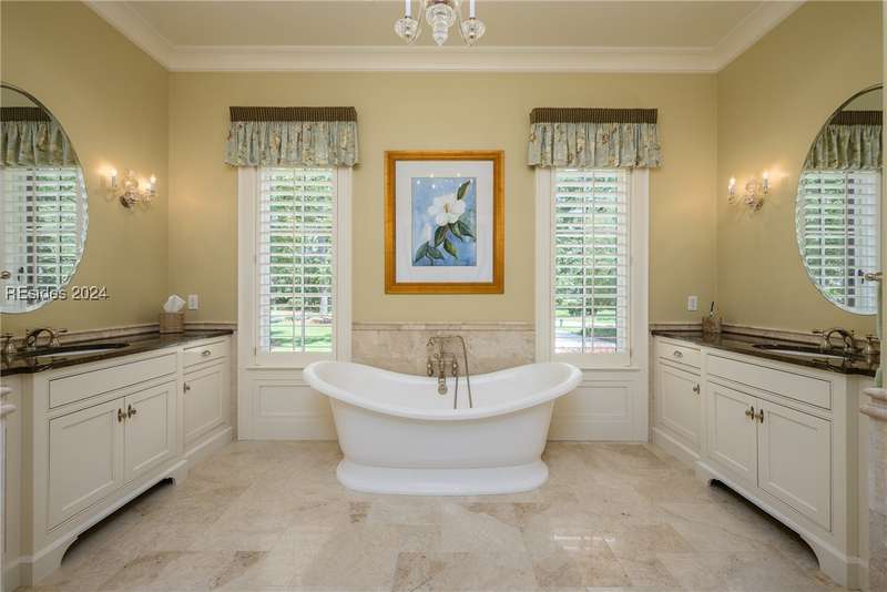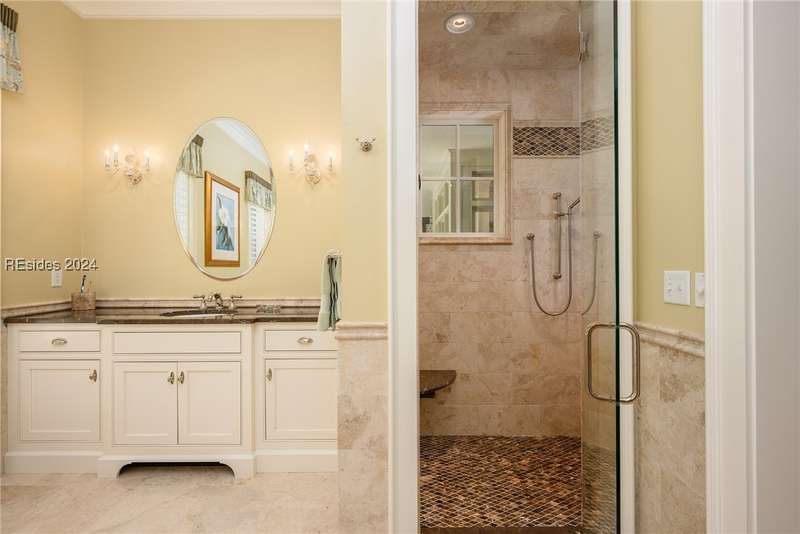 Unparalleled construction, like no other Oldfield home. Nestled on a spacious 1.05-acre lot, this might be the finest home ever offered in highly desirable Oldfield. Appointments include Savannah Grey Brick, Black Walnut flooring, Travertine tile and exquisite custom-crafted millwork, to name just a few. The spacious kitchen is extraordinary and a chef s dream custom cabinets, marble countertops, breakfast bar, Thermador appliances and ample sized pantry. Thoughtfully designed, floorplan features first-floor primary suite, separate guest quarters w/ kitchen located above one of two, 2-car garages, outdoor kitchen, screen porch and much more.