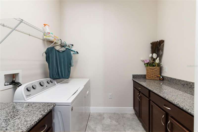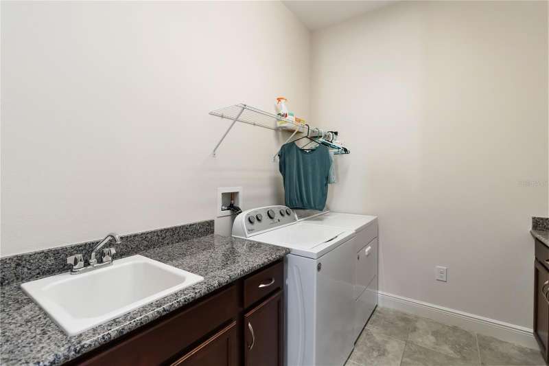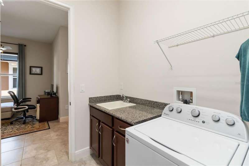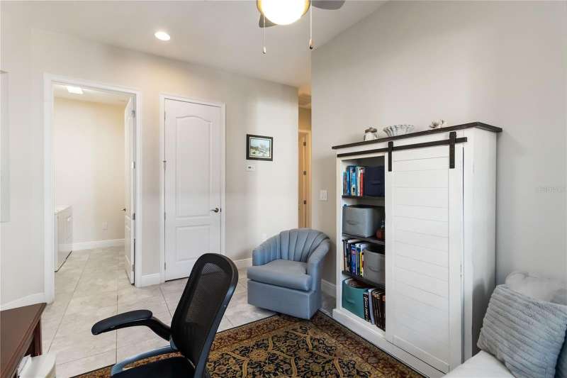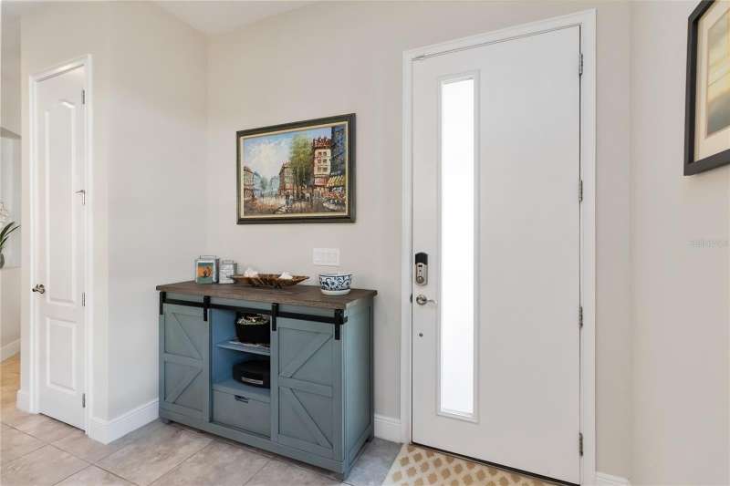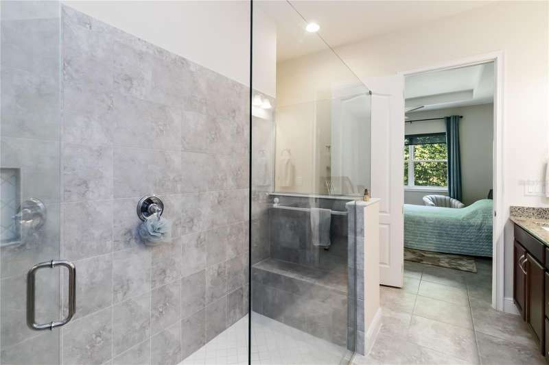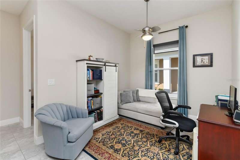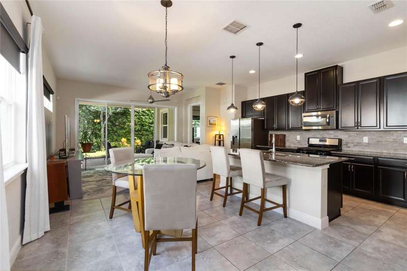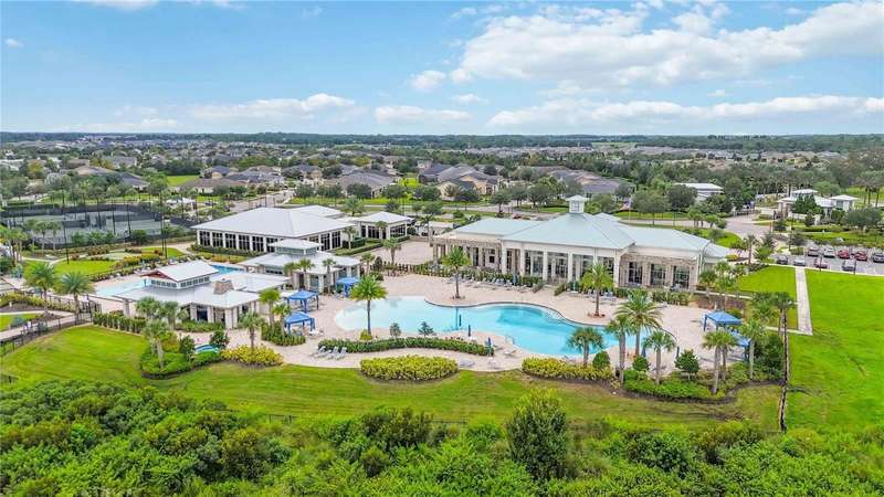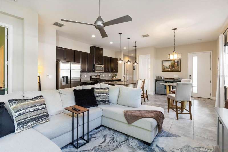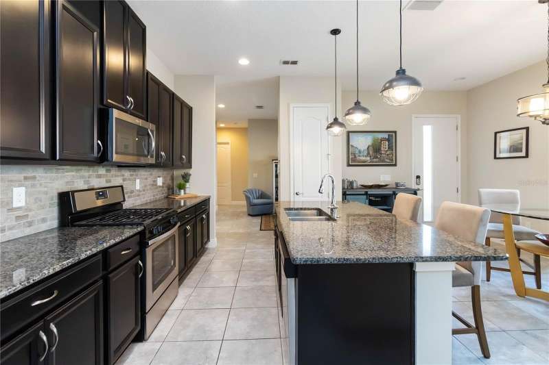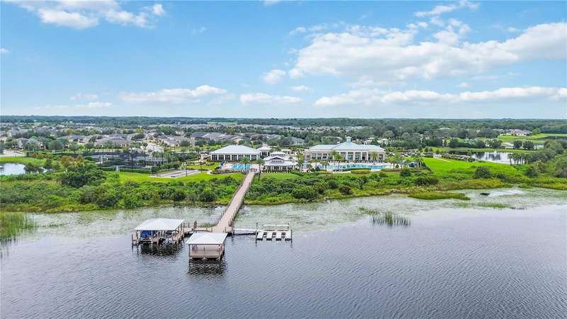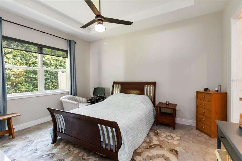 Meticulously kept! Absolutely Beautiful Daytona floor plan located in the well sought after Gated 55+ Active Del Webb Twin Lakes community. This floor plan is the largest of the Jones Homes villas! Twin Lakes HOA is responsible for the exterior of the villa, as well as maintaining the roof of the villa! Walk into the breathtaking property featuring ceramic tile throughout. Professionally painted, Great Décor. Upgraded kitchen 42" Cabinets, pantry, custom rounded granite countertops, Pendant lights, and chandelier. The living room features a transit window for extra natural lighting. Sliding glass doors lead to Lanai which features a privacy screen on the west side of the lanai that shades the sun, to enjoy your morning coffee or entertaining family and guest. Property is backed to privacy trees. Primary bedroom features a tray ceiling, and ceiling fan with light. The primary bedroom bathroom features custom closet by design shelving, glass shower doors, custom diamond shaped flooring in the shower, and custom tiling. Double vanity granite countertops. Large walk-in closet with closet by design shelving. Laundry room has tailored lower cabinets for great storage. Guest bedroom ceiling fan with light and custom blinds. Property has a newer Rinnai tankless water Heater. 2 car garage features custom paint and upper shelving for storage. Amenities include a Resort style pool, Lap Pool and 3rd pool on the carriage house side, 20,000 square foot Gorgeous Clubhouse, State of the art Fitness Center, Flex room, Tennis Courts, Putting Green, Walking Trails, Pickle Ball Court, Fishing, Kayaks, Pontoon Boats and Jon boat to use on Live Oak Lake! The community has many active and socializing activities. View today!