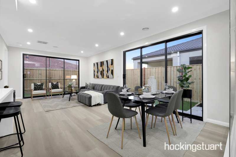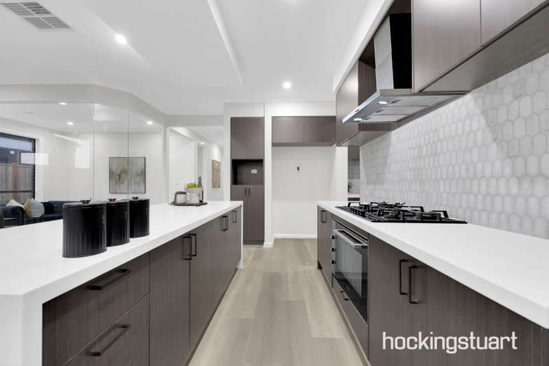 This Four Bedroom Featuring High Ceilings, An Abundance Of Down Lights And Neutral Tones In Kitchen And Bathrooms Create A Timeless Atmosphere Of Light, Space And Ambiance. A Bright And Light Filled Open Floor Plan Spoils You With A Functional & Spacious Kitchen, With Quality Cabinetry And Appliances, Dishwasher, And Oven, All Topped Off With An Adjoining Dining/Living Area. Four Bedrooms, Open Lounge And Three Bathrooms That This Home Really Has To Offer. This Beautiful Home Features: • Impressive Custom Façade • 2 Master Bedrooms With Full En-Suite • Other Additional Bedrooms With Built-In Robes • Upgraded Laundry With Access To The Back Yard • Fully Tiled Sparkling Bathrooms • Stone Benchtops In Bathrooms And Laundry • Refrigerated Heating And Cooling • Down Lights Throughout • High Ceilings • High Internal Doors • Modern Kitchen With Large Island Stone • 900mm Cooktop And Oven • Dishwasher • Quality Tapware In Bathrooms • High Quality Fixtures And Fittings Throughout • Fully Landscaped Front And Backyard • Concrete Driveway • Concrete Around The Home • Remote Controlled Garage • Fully Fenced What's Closest: Schools: Drive to Barrawang Primary School, Carlo Acutis Primary School, Wollert Primary and Secondary School and Edgars Road Primary School. Shops: Aurora Town Village - Coles, Aldi, local bakery, cafes and laundromats, plus groceries. Parks : Varanasi Drive Central Park Playground, Sophia park, Deltora Park, Mystique Estate Park Freeway : Hume Freeway Access. Approx 45 mins Drive to Melbourne CBD. Note: Photos are for illustrative purposes only. Inspect Today! Samaira - 0416 382 477 Love Sharma - 0430 534 802