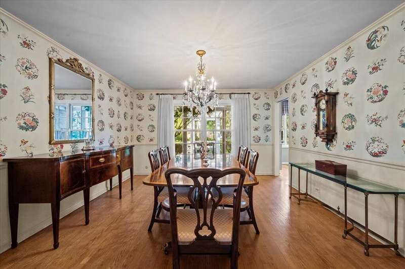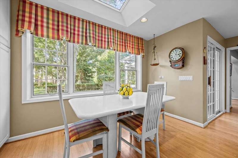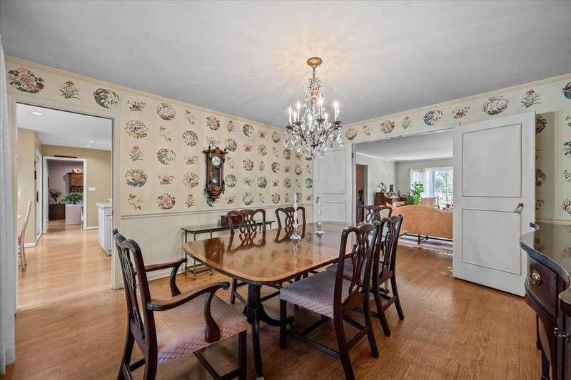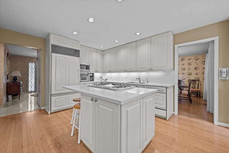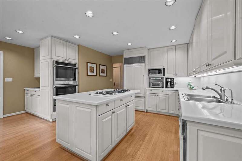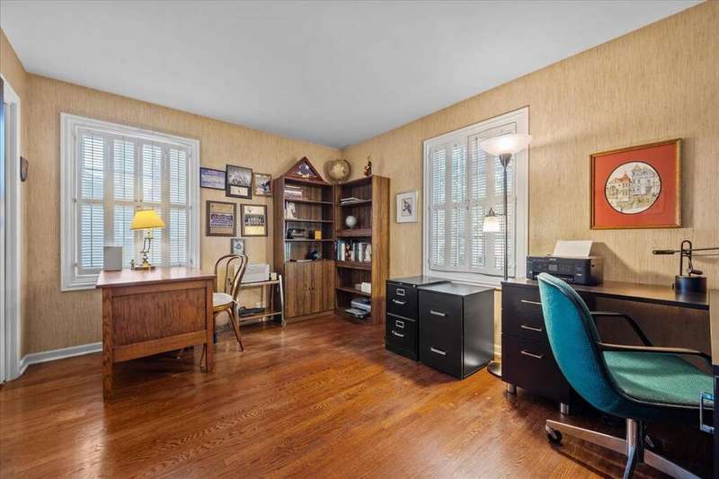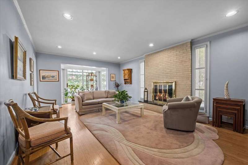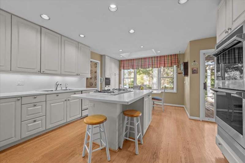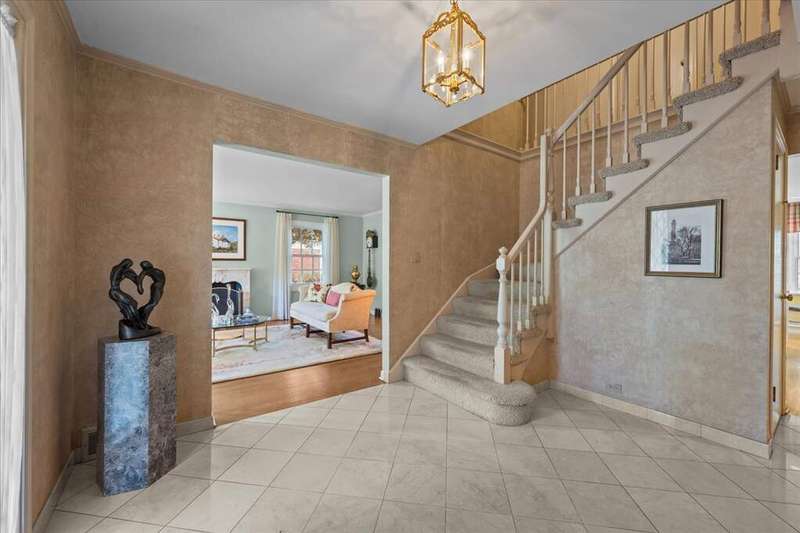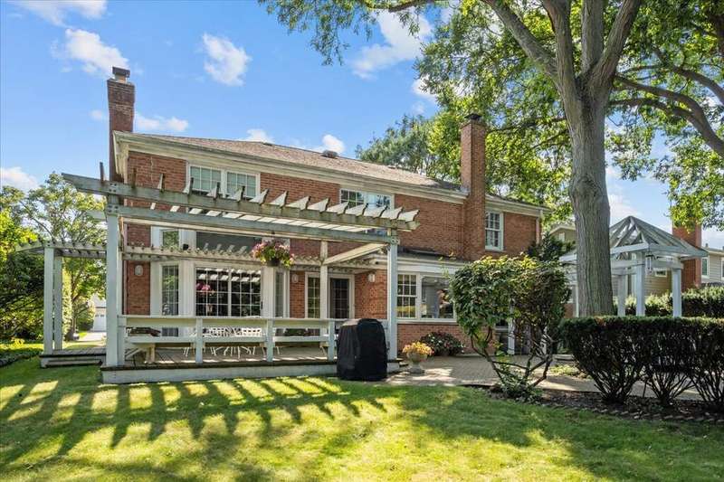 Set in the well-established Bonnie Glen neighborhood, this 4-bedroom, 2.1 bath home offers generous living space, and a comfortable layout. The main level features a spacious foyer leading into a light-filled living room with bay window overlooking the front yard. The adjoining dining room, with picture windows facing the backyard and deck, provides an inviting space for gatherings. The kitchen offers a central island, table area, and wet bar, which flows into the comfortable family room with bay window, fireplace and sliding glass doors to the back patio and pergola. Hardwood floors run throughout the main level, which also includes a large half bath for guests. Upstairs, you'll find a spacious primary suite, three additional bedrooms, and a full hall bath, along with two large hallway closets offering additional storage. There is hardwood flooring under the carpeting on the second floor. The finished basement provides even more usable space, featuring a rec room with wet bar, a dedicated laundry room, and a large storage area. Outside, the backyard features a brick patio and pergolas - ideal for casual outdoor living. This solid, well-loved home is ready for its next chapter, and provides a great opportunity to personalize over time. Located just minutes from downtown Glenview, this home is close to shopping, dining, and upcoming downtown improvements that are bringing new energy and amenities to the area. Being sold "as-is".