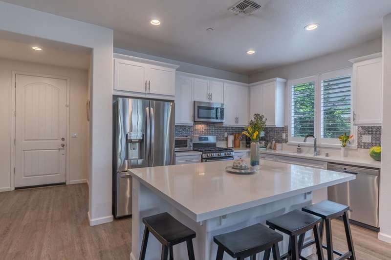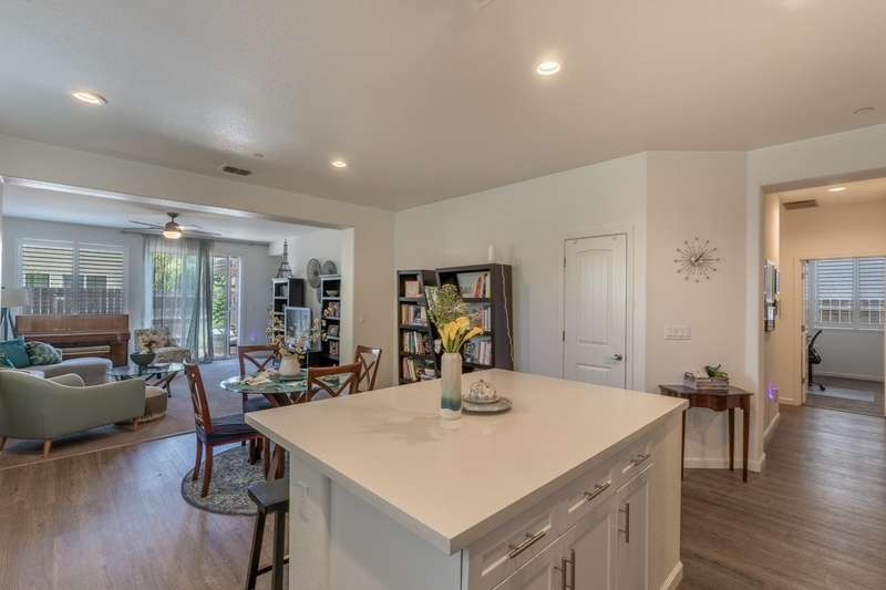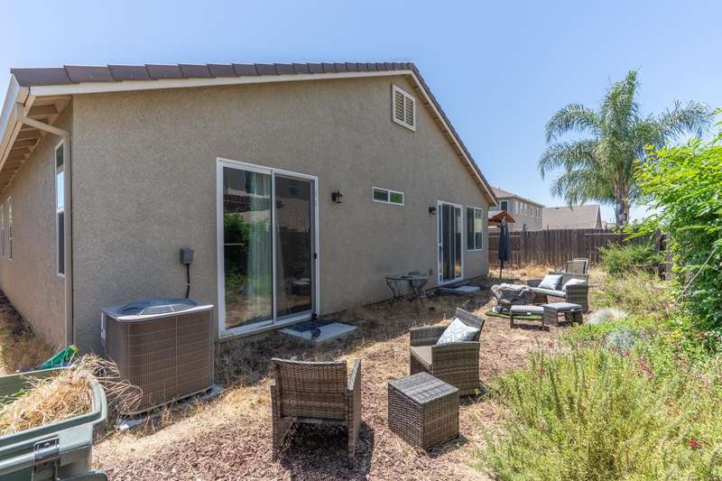 A well-appointed 4-bedroom, 2-bathroom single-story home in charming Livingston. Built in 2018, this 1,796 sq ft residence boasts a thoughtful design and an array of desirable builder upgrades throughout, including upgraded flooring and enhanced electrical and lighting packages with additional recessed lighting. The heart of the home, the gourmet kitchen, features premium quartz countertops, a large island, upgraded cabinetry, and stainless steel appliances, while the adjacent dining room offers custom cabinetry with matching quartz countertops, perfect for entertaining. The private owner's suite is a true sanctuary with an en-suite bathroom featuring upgraded fixtures, dual vanities, a walk-in shower, and a spacious walk-in closet. Three additional well-sized bedrooms provide ample space for family, guests, or a home gym. Enjoy the comfort of a central HVAC system and the natural shade from large trees on the north side of the home. The backyard provides a relaxing space for outdoor enjoyment, and the attached 2-car garage offers convenient parking and storage with a pre-wired electrical charger. Located in a desirable Livingston neighborhood, this is a fantastic opportunity to own a home with significant builder investments already made.