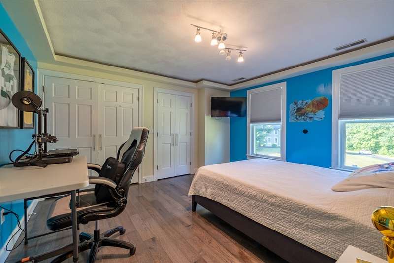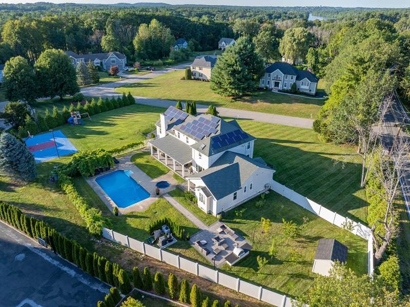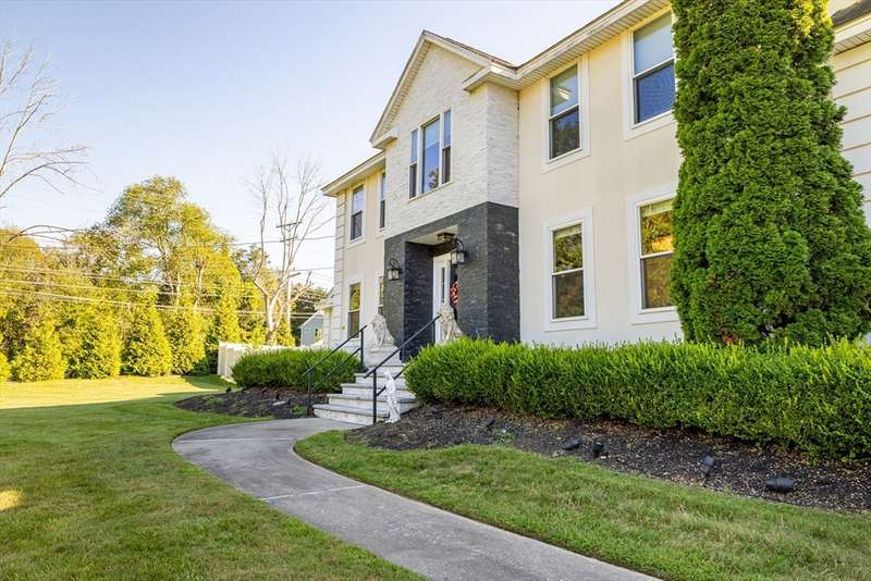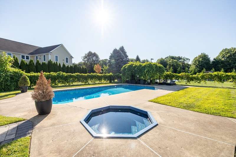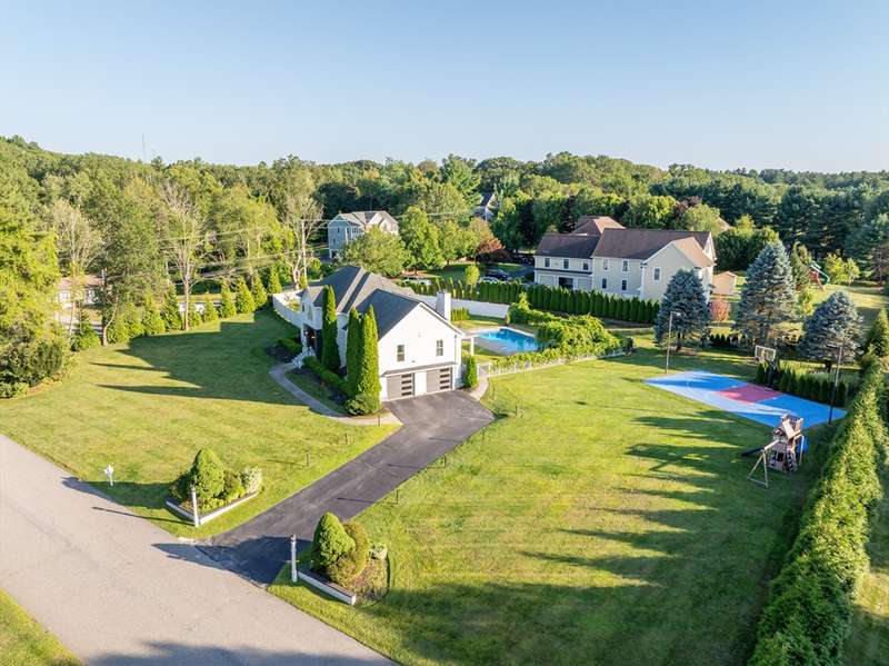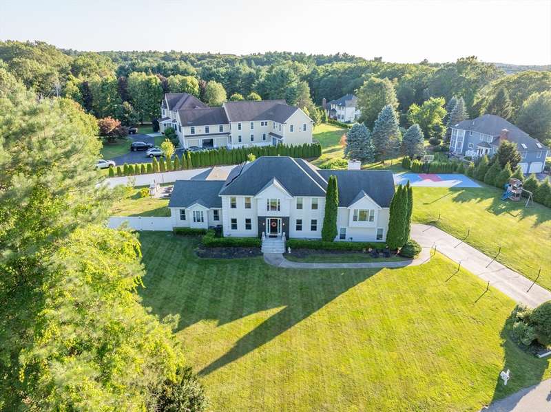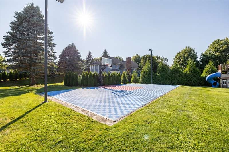 PERFECT FOR MULTI-GENERATIONAL LIVING – EXPERIENCE RESORT-STYLE LIVING IN THIS LUXURIOUS ANDOVER COLONIAL! Set on a beautifully landscaped acre, this 6-bedroom, 5.5-bath home blends elegance, comfort, and entertainment. A grand foyer opens to sunlit living and dining spaces with crown molding, wainscoting, and a cathedral-ceiling family room with fireplace. The gourmet kitchen features stainless steel appliances, an oversized island, and sliders to the backyard oasis. The serene primary suite offers a walk-in closet and spa-like bath with tiled shower. The finished lower level includes a game room, gym, bonus room, and a second kitchen with dining area, ideal for extended living or entertaining. Outdoors, enjoy an inground heated pool, hot tub, gazebo, outdoor grill, pizza oven, fenced yard, and a rare half basketball court perfect for active living. With a 2-car garage, abundant parking, central air, and professional landscaping, this home delivers true luxury.