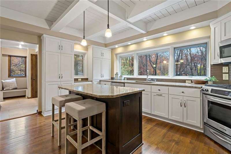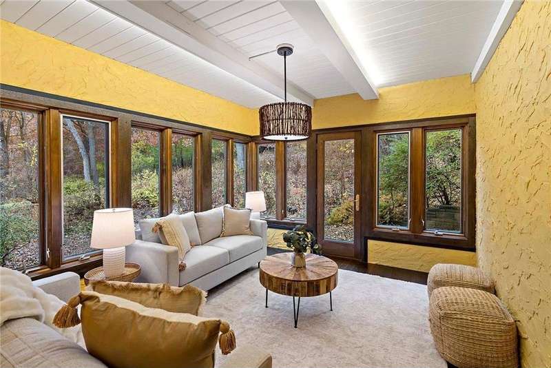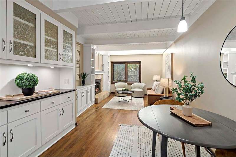 Light, Bright Mid-Century with a Capacious Heart. This unique home features spacious rooms that extend beyond their walls, filling the interior with sunlight and views of lush foliage. Enjoy the cozy hearth room. seamlessly connected to a stylishly upgraded and functional kitchen. The main floor primary bedroom is thoughtfully designed, complemented by a second-level office or nursery that adapts to your lifestyle. Original charm meets modern convenience this home is ready for your personal touch.