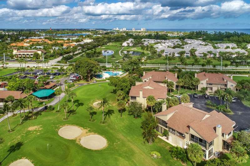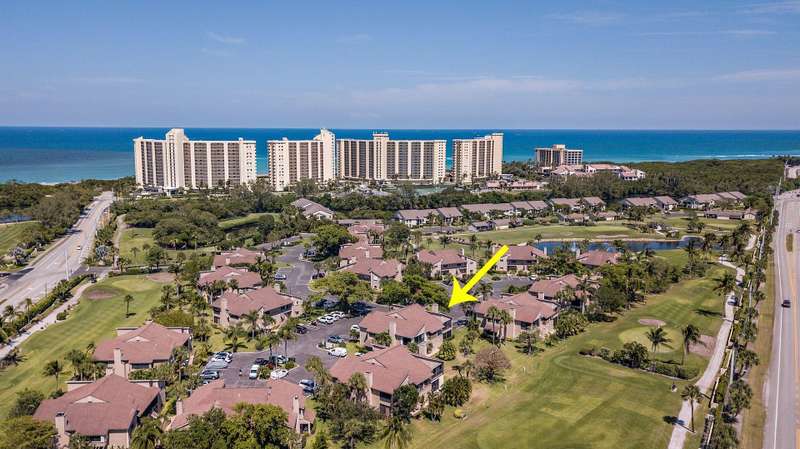 Available 2025 Off-Season May 1-Nov 30 @ $2,600/mo & 2026 Season Dec 1-April 30, 2026 @ $6,800/mo. Walk to the turquoise waters of Jupiter Beach from this 1st floor, 2 bed, 2 bath golf-front residence at the Jupiter Dunes. Relax on the large lanai overlooking the golf course & enjoy the ocean breezes from this great location. This light & bright condo was recently updated and fully equipped for a great vacation get-away in Jupiter; granite kitchen & baths, crown molding; 2 glass enclosed/screened porches; Primary bedroom w/king bed, walk-in closet, ensuite bath & access to lanai overlooking the golf course; guest bedroom w/queen bed; 3 flat screen TV's & full sized washer & dryer. Walk to the beach, golf, shops & numerous waterfront restaurants. A perfect beach retreat!