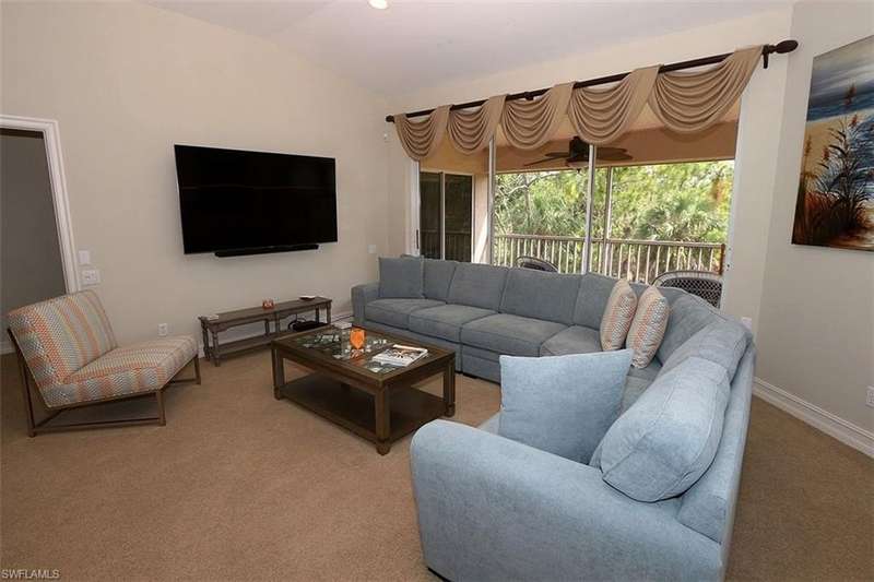 Private preserve view from this pleasantly furnished second floor expansive residence located within one of north Naples' most popular communities! Tasteful design scheme of traditional Florida style with hints of a contemporary flair. The large living room along with a separate intimate TV room offer multiple room TV viewing options. Two full bedrooms plus a working full office/third bedroom with hideaway Murphy bed provide comfortable sleeping accommodations for residents along with their overflow guests. Soaring ceilings, modern electronics, updated kitchen with stainless steel appliances plus much more add to the luxury appeal of this residence. Every creature comfort has been provided to make a tenant's stay more convenient and enjoyable. Amenities to Bimini (located within the Villages of Tarpon Cove) include two heated pools & spa and gated entry. Enjoy all the amenities the entire community of Tarpon Cove Yacht & Racquet Club has to offer including three heated pools and two spas, tennis, a full service clubhouse with formal & casual dining, exercise room, beach boat shuttle and gated entry. Just minutes to the beach, shopping, dining and entertainment.