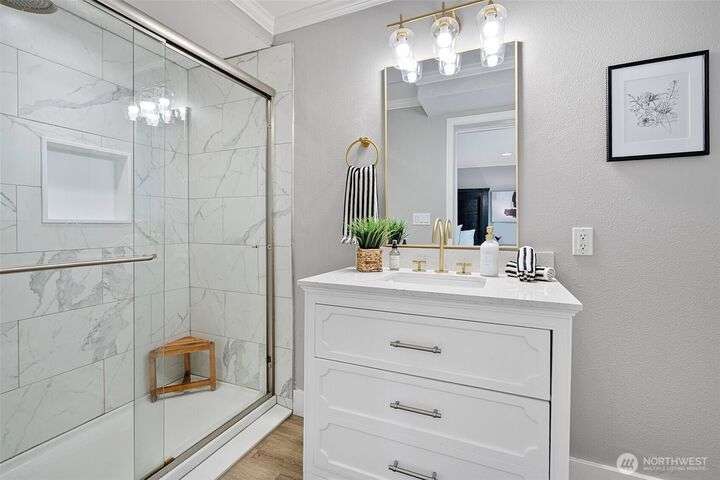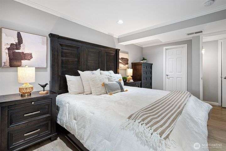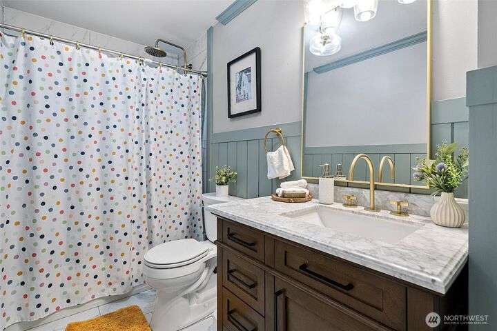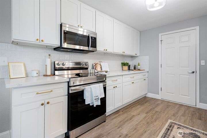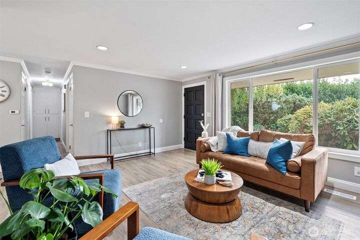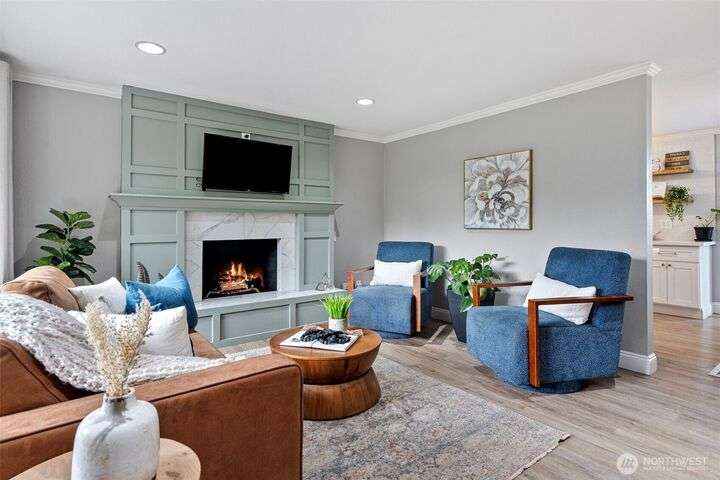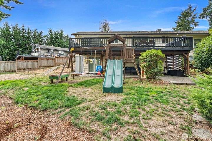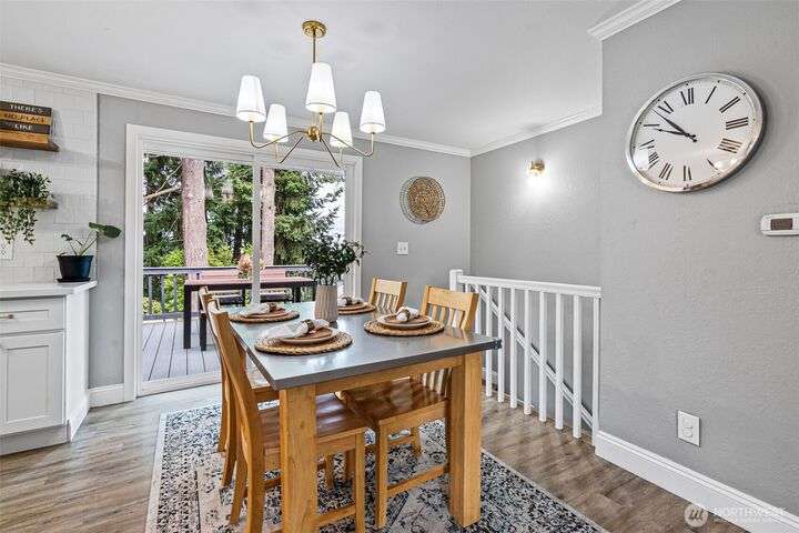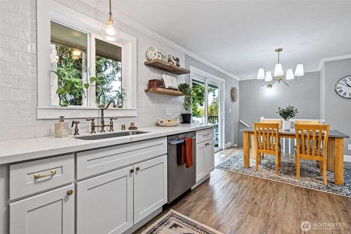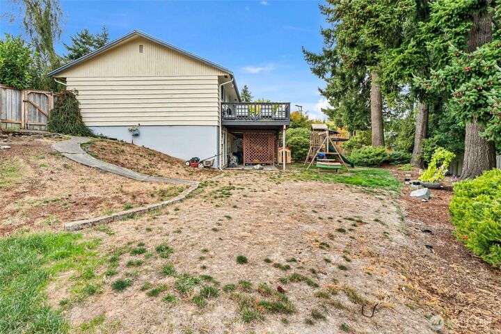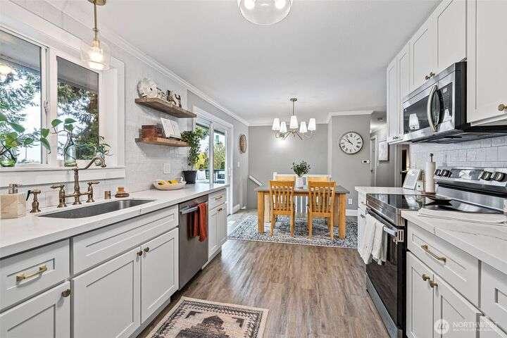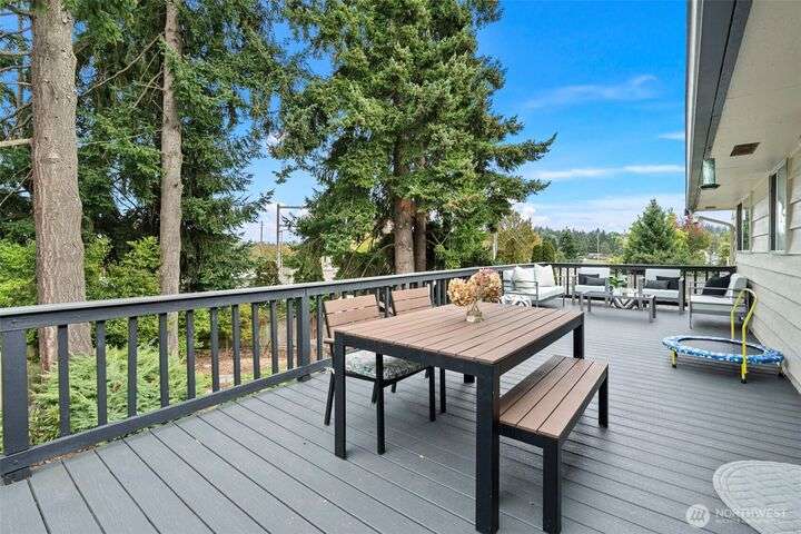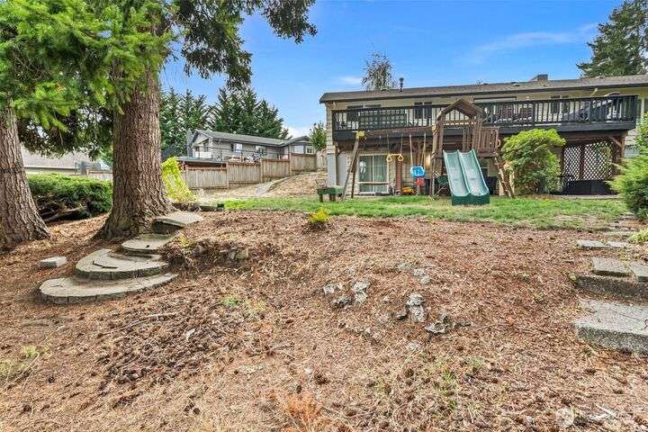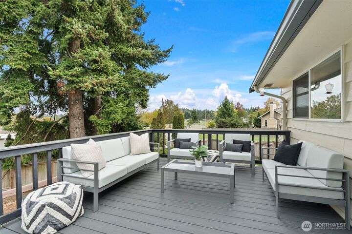 Welcome to this beautifully remodeled home showcasing newer flooring, designer lighting, a stunning kitchen, and custom tile details throughout. Spacious living and entertaining areas span both levels, with a large deck off the dining room perfect for gatherings and enjoying views of Mt. Rainier. The oversized 2-car garage and ample off-street parking make hosting simple. Outside, enjoy a fully fenced backyard with mature landscaping in a quiet, well-kept community. Ideally located in a top school district just steps from Vassault Park and minutes from Ruston and Proctor. Move-in ready and waiting for you!