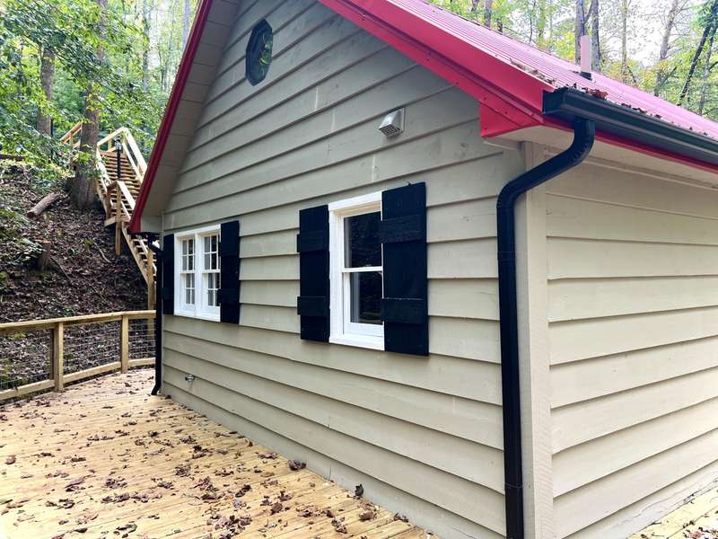 Escape to this beautiful, fully renovated cabin tucked away in the woods! This cozy 1-bedroom, 1-bath home features a spacious loft and a stunning 3/4 wrap-around porch-perfect for relaxing and soaking in the peaceful surroundings. Nestled on 1 unrestricted acre, the property is a true nature lover's paradise with deer, elk, and turkey often passing through. Surrounded by mature black walnut, persimmon, and acorn trees, this cabin radiates beautiful character and rustic charm. Enjoy the peaceful atmosphere as the colorful leaves fall around you, creating a picture-perfect retreat. Located near local boat ramps, this property offers both adventure and serenity. Whether you're seeking an outdoor adventure, a permanent residence, or an income-producing Airbnb getaway, this cabin is move-in ready and waiting for its next owner. Don't miss your chance to own this one-of-a-kind woodland gem!