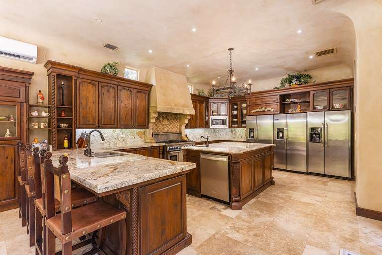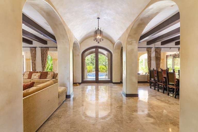 From the moment you arrive, the property's classic Italian design captivates you—arched doorways, wrought-iron detailing, terracotta rooflines, and warm stone accents create an authentic old-world ambiance, while premium hand-laid stucco and modern craftsmanship ensure lasting quality. Mature landscaping provides natural privacy and frames breathtaking golf course views, offering a serene environment that feels worlds away, yet is just minutes from the beach.
