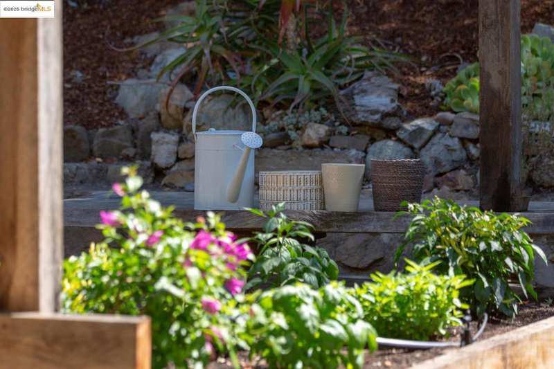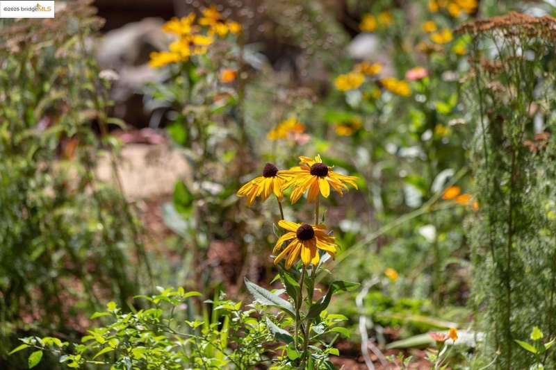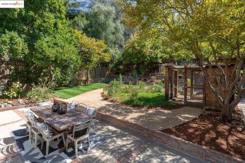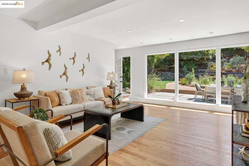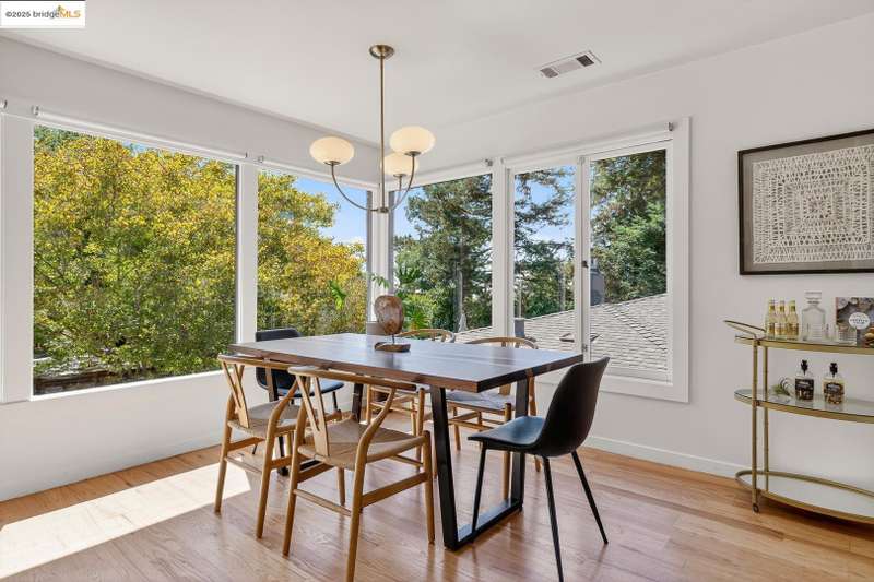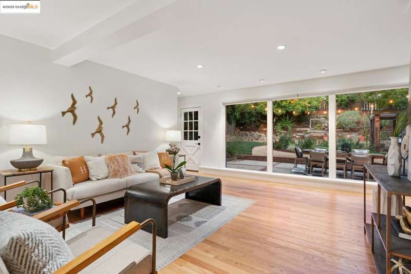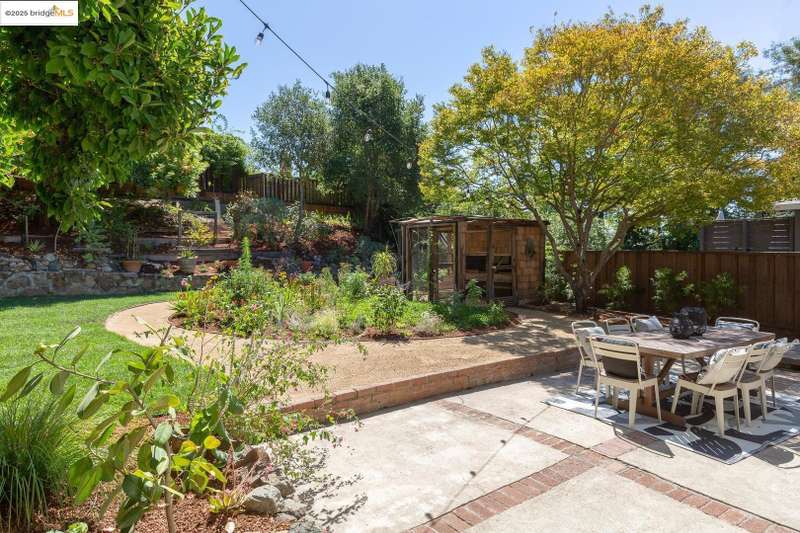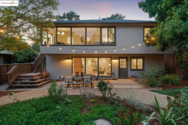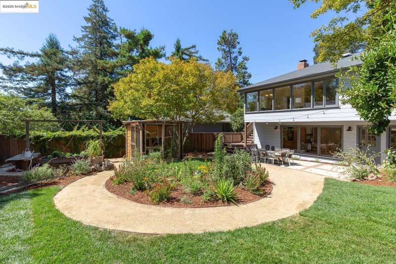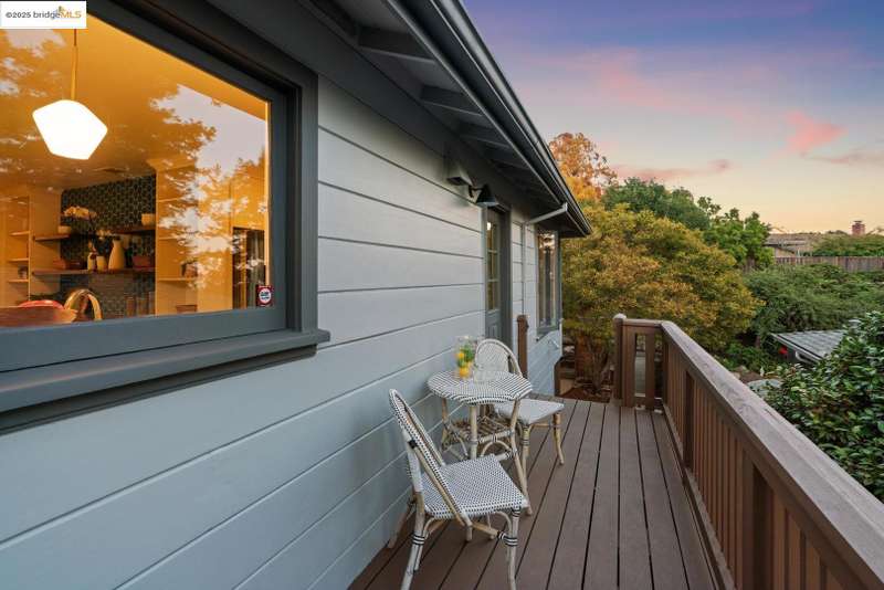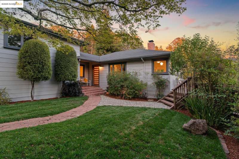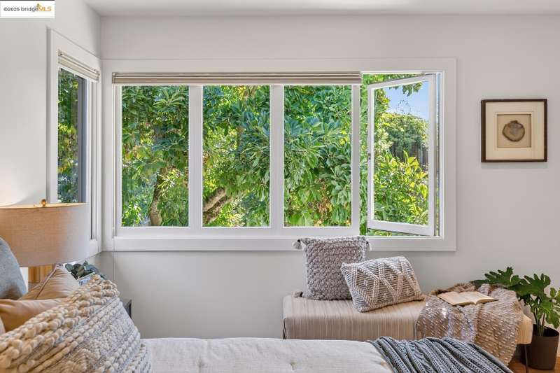 Welcome to the sunny, enchanting pocket of Joaquin Miller, Oakland. Here, beneath a graceful maple tree, awaits an oasis of a home—nestled in nature, a hidden world of its own. A brick path winds through a lush front lawn, the perfect spot for morning coffee. Step inside to discover floor-to-ceiling windows, flooded with natural light, while mature trees frame every view—as if nature itself were the décor. The living room flows effortlessly to the dining area, and an updated polished kitchen. Top-line appliances, custom banquette seating, and live-edge wood shelving, creates a space both functional and beautiful. Open the kitchen’s Dutch door to a small deck—indoor-outdoor living at its finest. Additionally, two spacious bedrooms and a chic updated bathroom await. Downstairs, endless options available for the vast bonus room—customize entirely to fit your life. A garden-view bedroom with office or vanity room, laundry, and a huge storage room will delight. Outside, the backyard blooms with magic—a large patio for al fresco dining, fruit trees, exquisite plantings, an herb garden, and even a handcrafted chicken palace. Birdsong and calm surround you. With an oversized two-car garage and dual EV chargers, this home has it all. Your own retreat awaits- welcome your heart home!