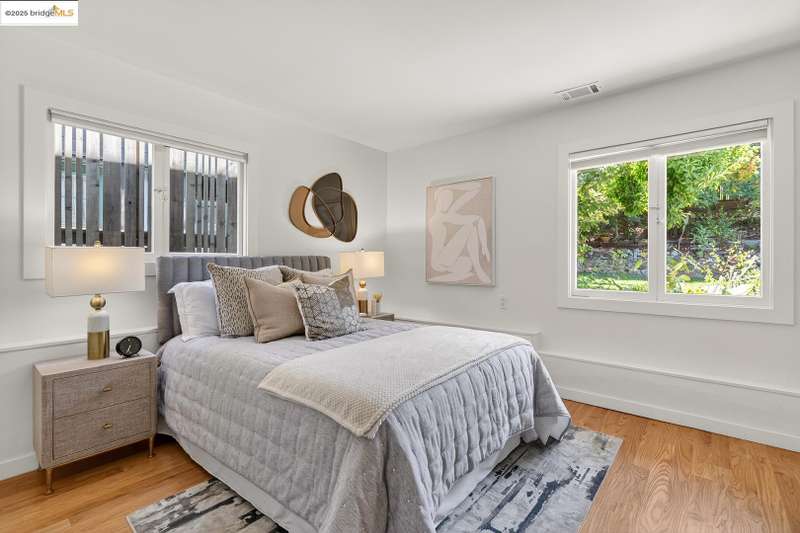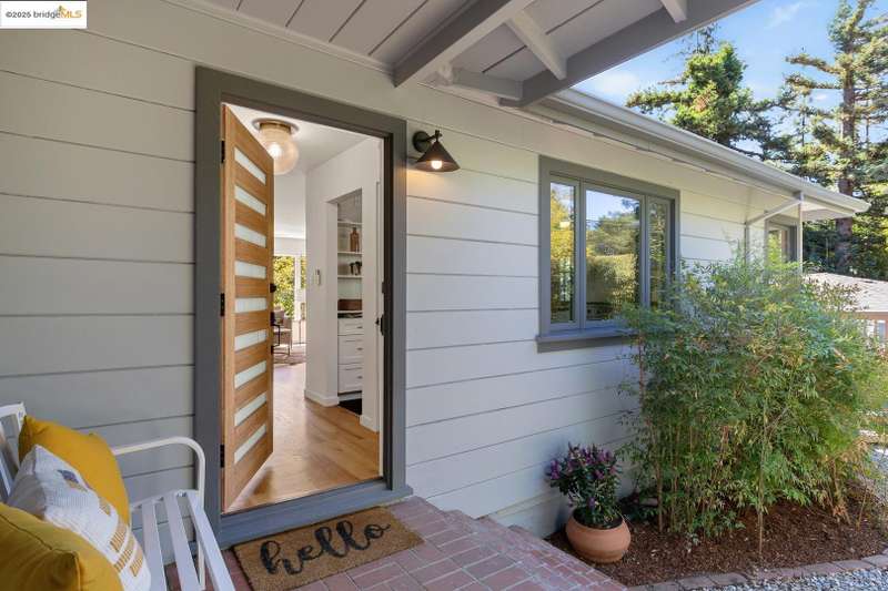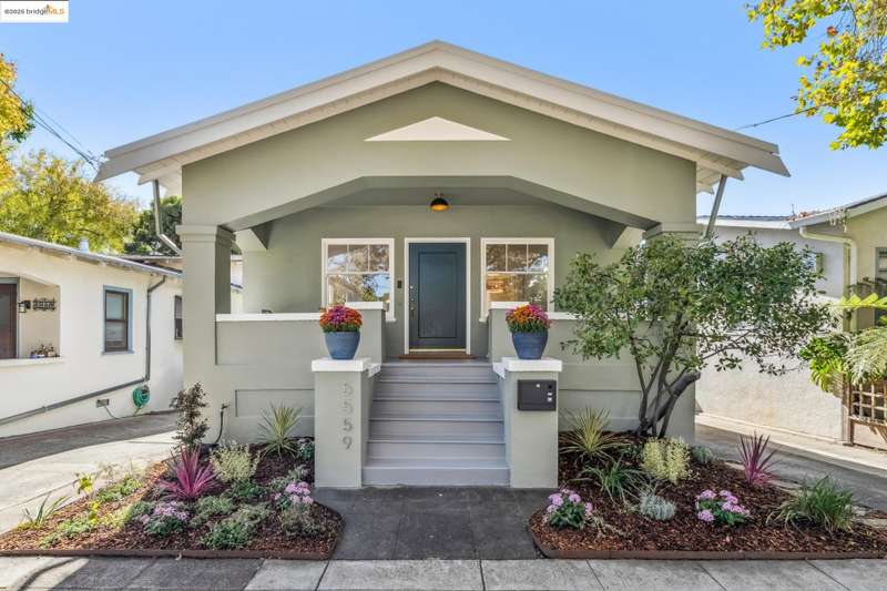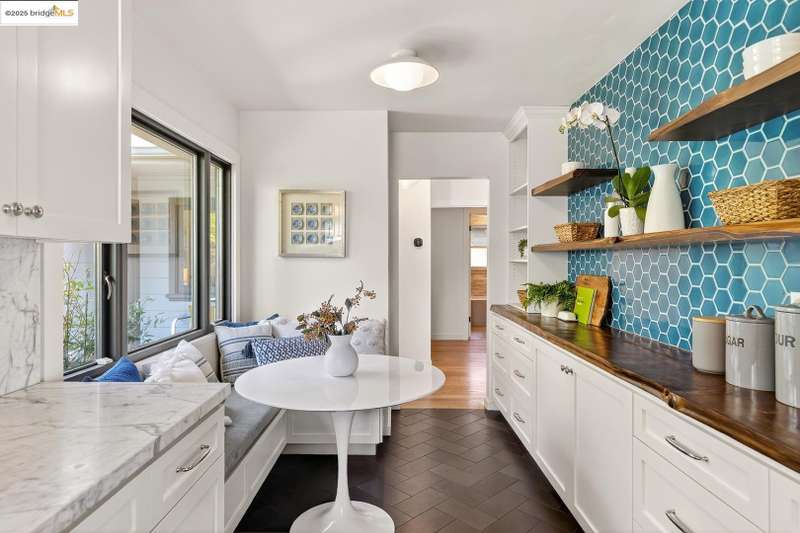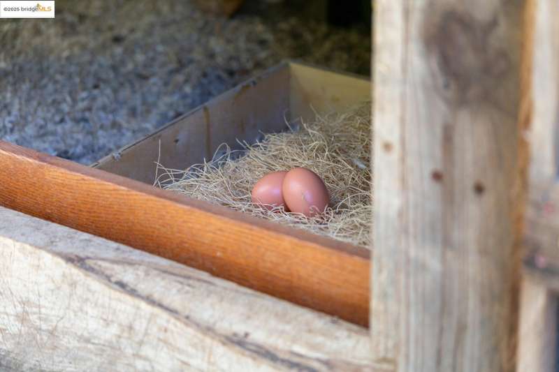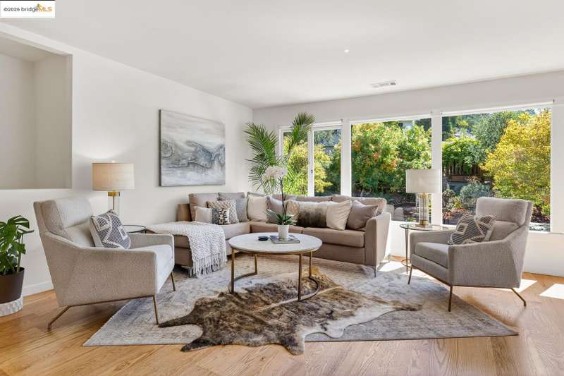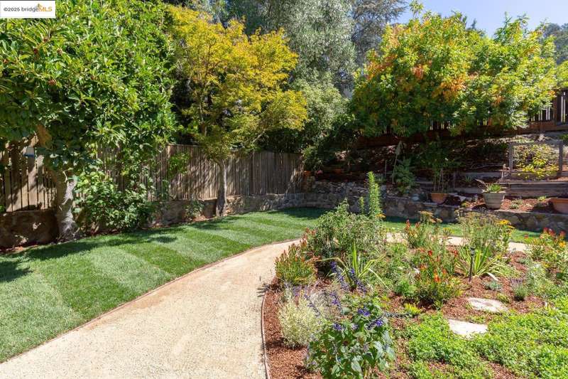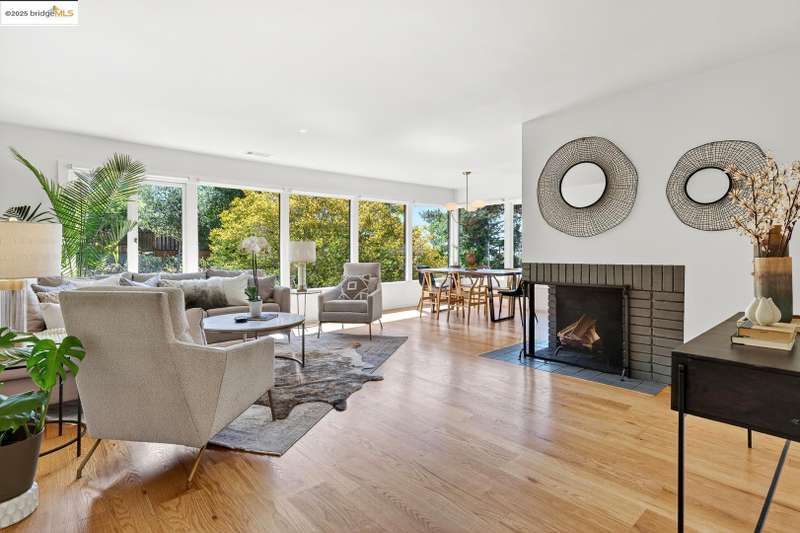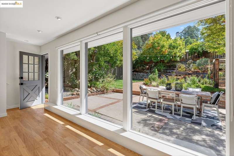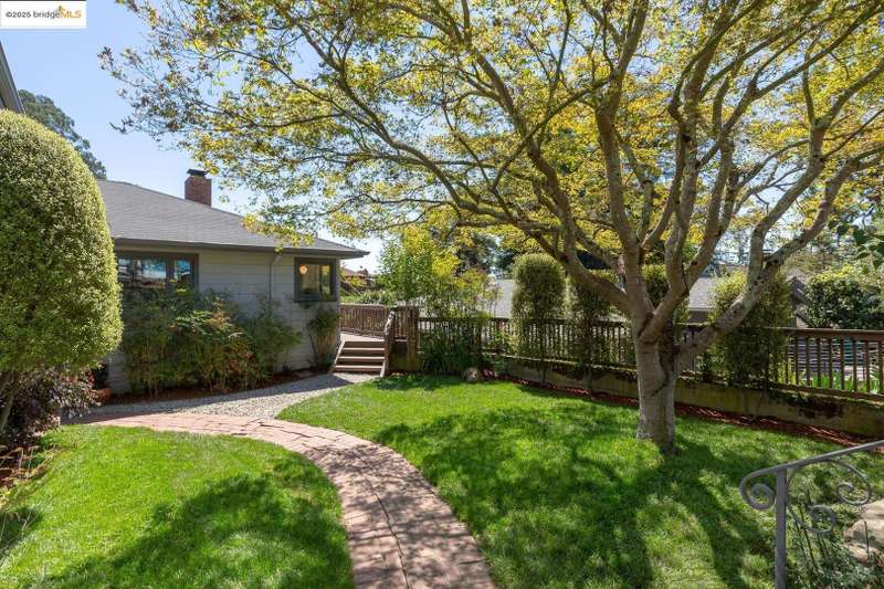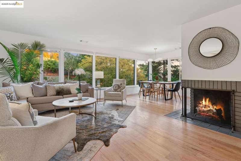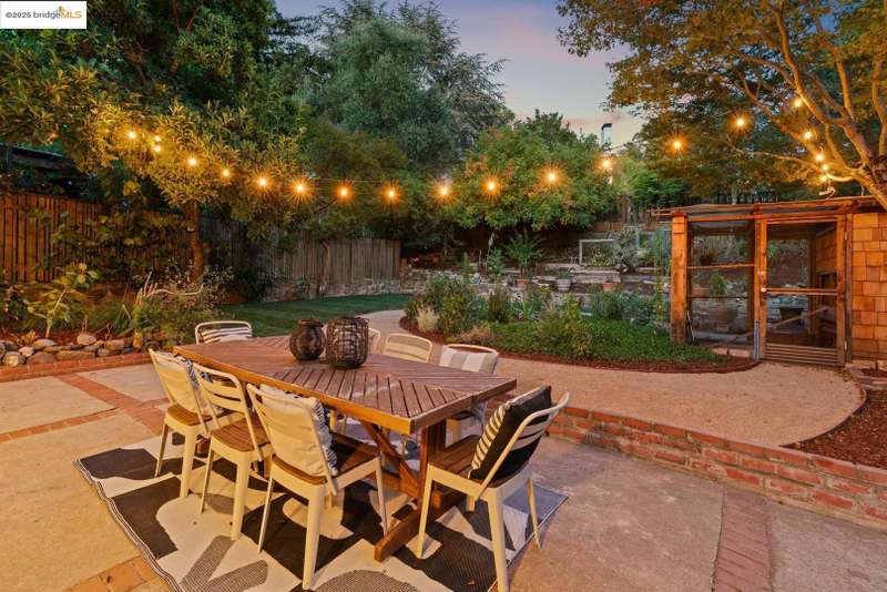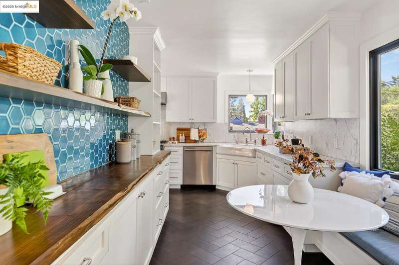 Welcome to the sunny, enchanting pocket of Joaquin Miller, Oakland. Here, beneath a graceful maple tree, awaits an oasis of a home—nestled in nature, a hidden world of its own. A brick path winds through a lush front lawn, the perfect spot for morning coffee. Step inside to discover floor-to-ceiling windows, flooded with natural light, while mature trees frame every view—as if nature itself were the décor. The living room flows effortlessly to the dining area, and an updated polished kitchen. Top-line appliances, custom banquette seating, and live-edge wood shelving, creates a space both functional and beautiful. Open the kitchen’s Dutch door to a small deck—indoor-outdoor living at its finest. Additionally, two spacious bedrooms and a chic updated bathroom await. Downstairs, endless options available for the vast bonus room—customize entirely to fit your life. A garden-view bedroom with office or vanity room, laundry, and a huge storage room will delight. Outside, the backyard blooms with magic—a large patio for al fresco dining, fruit trees, exquisite plantings, an herb garden, and even a handcrafted chicken palace. Birdsong and calm surround you. With an oversized two-car garage and dual EV chargers, this home has it all. Your own retreat awaits- welcome your heart home!