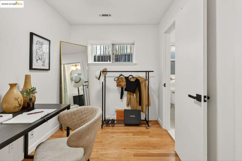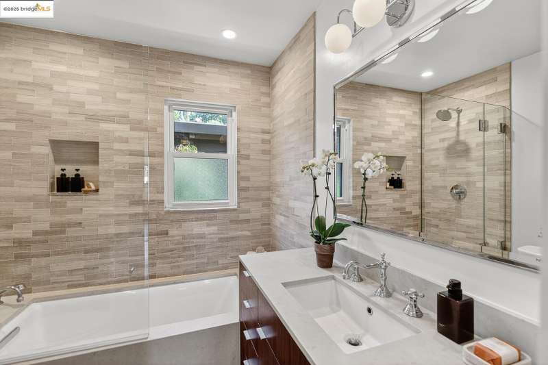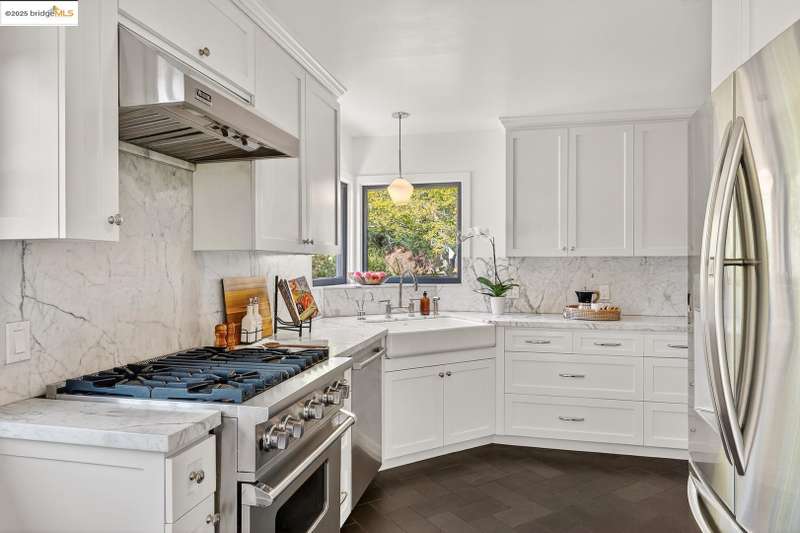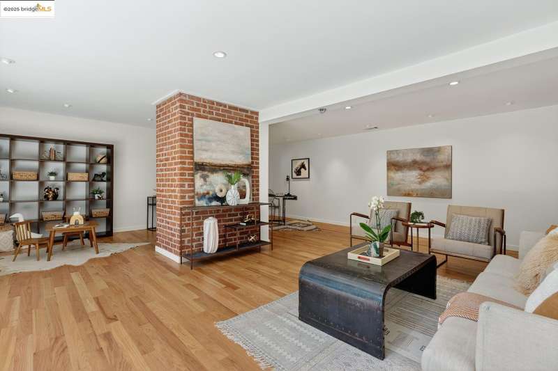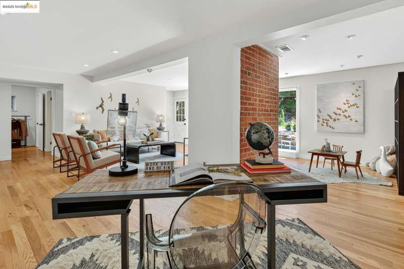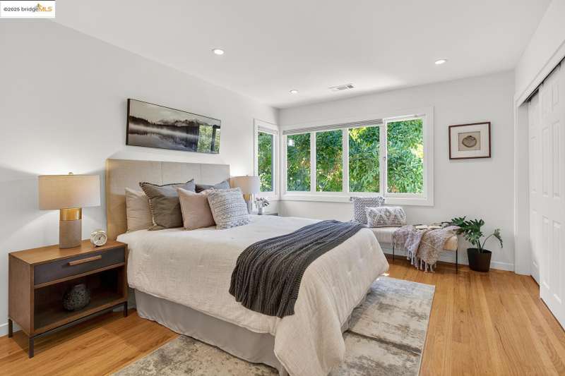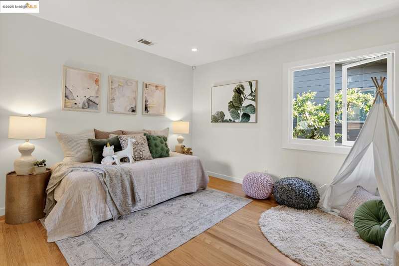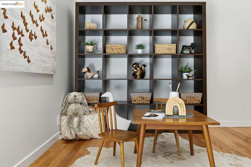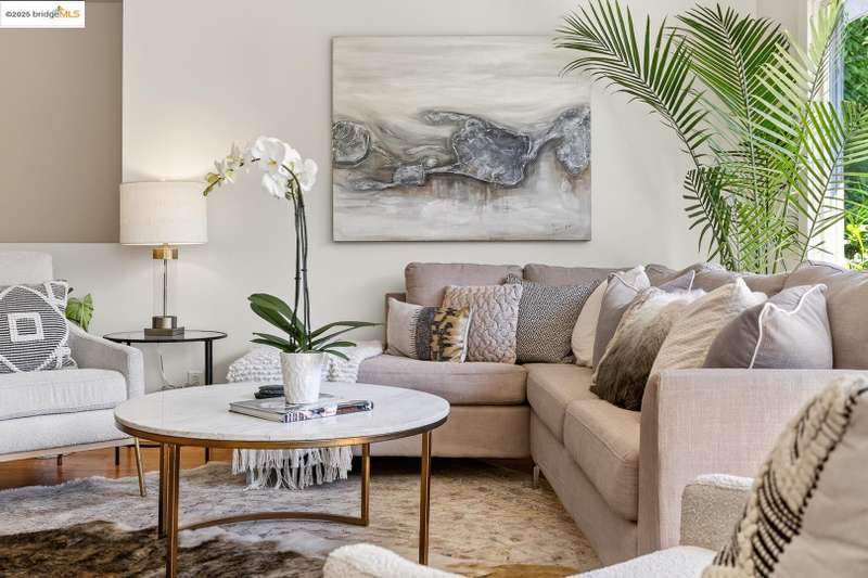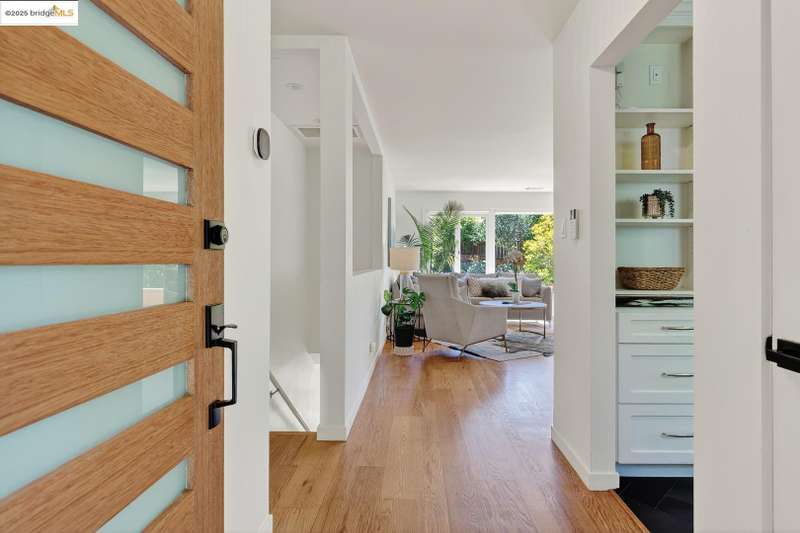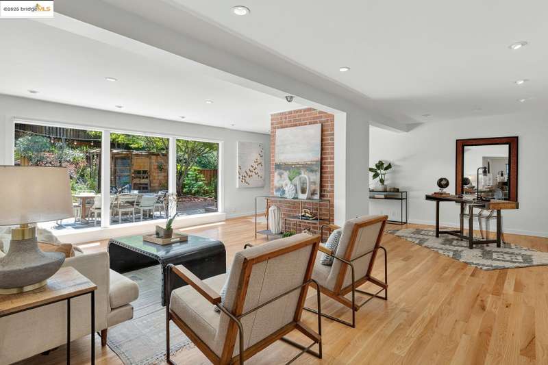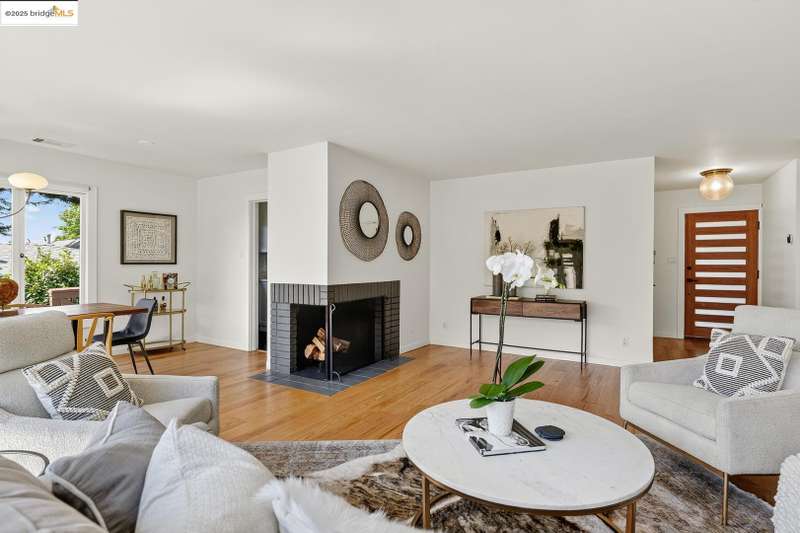 Welcome to the sunny, enchanting pocket of Joaquin Miller, Oakland. Here, beneath a graceful maple tree, awaits an oasis of a home—nestled in nature, a hidden world of its own. A brick path winds through a lush front lawn, the perfect spot for morning coffee. Step inside to discover floor-to-ceiling windows, flooded with natural light, while mature trees frame every view—as if nature itself were the décor. The living room flows effortlessly to the dining area, and an updated polished kitchen. Top-line appliances, custom banquette seating, and live-edge wood shelving, creates a space both functional and beautiful. Open the kitchen’s Dutch door to a small deck—indoor-outdoor living at its finest. Additionally, two spacious bedrooms and a chic updated bathroom await. Downstairs, endless options available for the vast bonus room—customize entirely to fit your life. A garden-view bedroom with office or vanity room, laundry, and a huge storage room will delight. Outside, the backyard blooms with magic—a large patio for al fresco dining, fruit trees, exquisite plantings, an herb garden, and even a handcrafted chicken palace. Birdsong and calm surround you. With an oversized two-car garage and dual EV chargers, this home has it all. Your own retreat awaits- welcome your heart home!