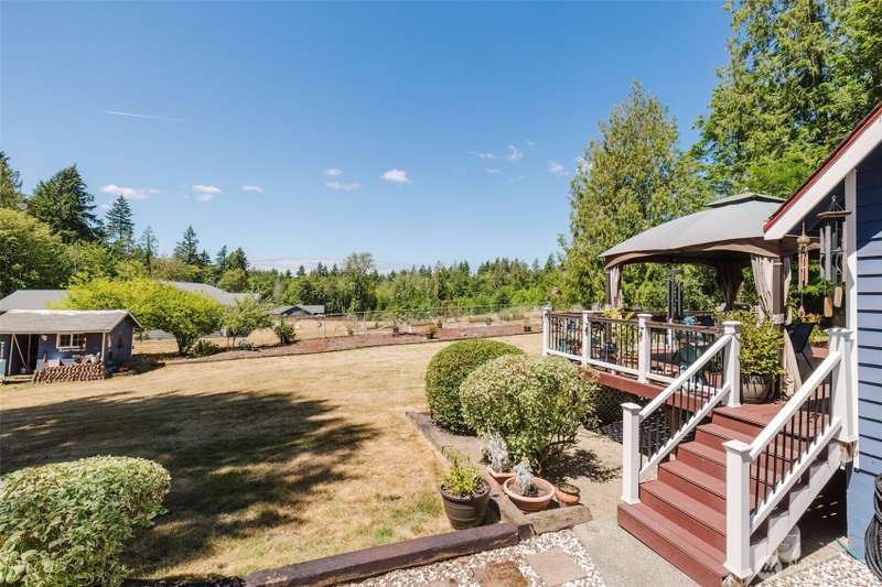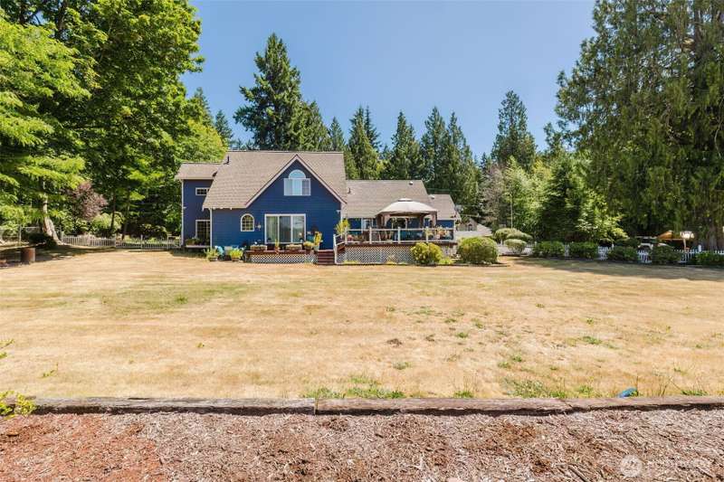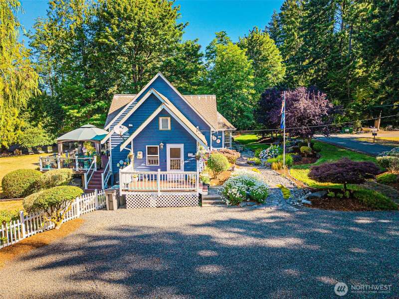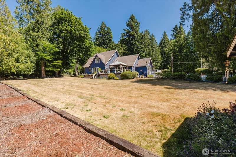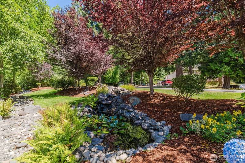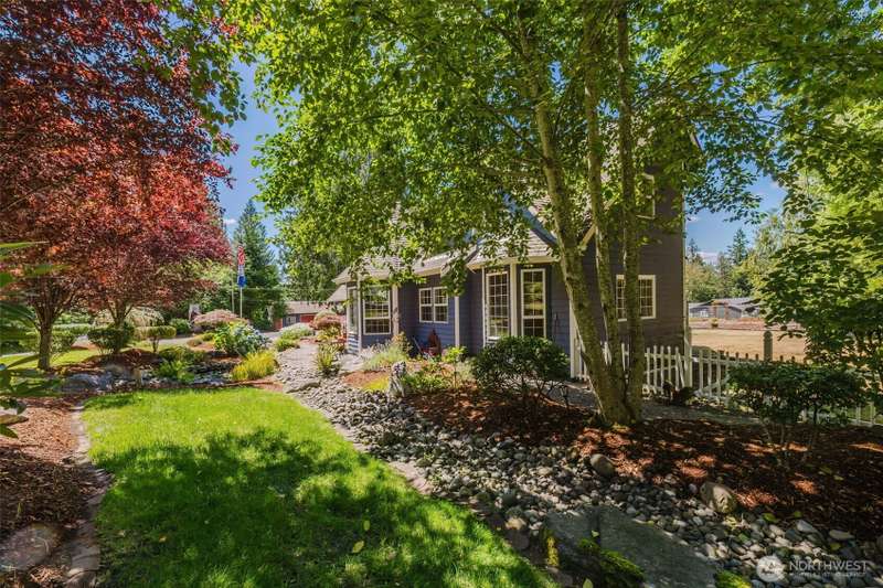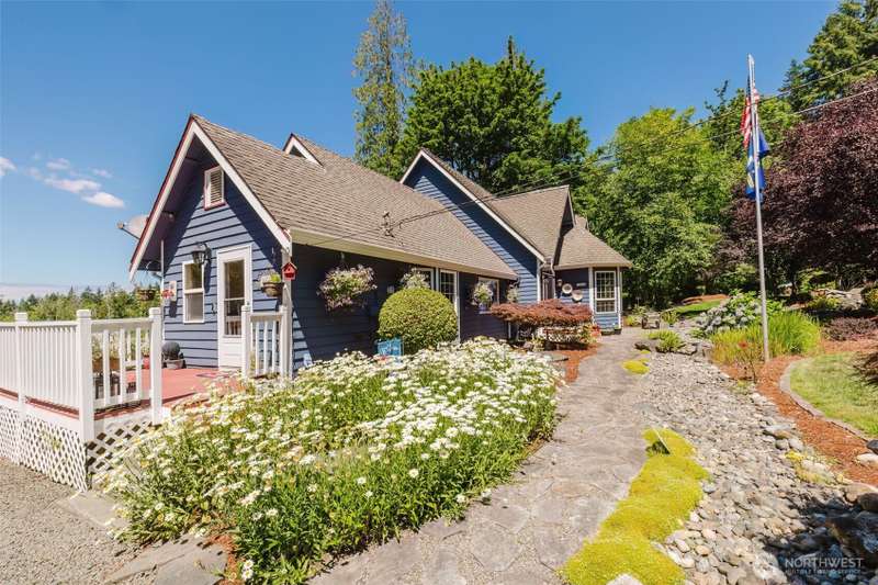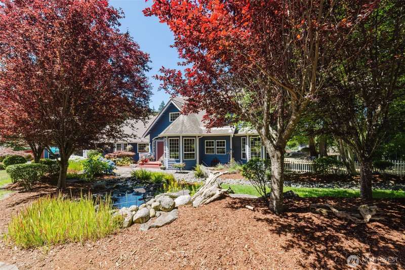 Delightful Peaceful setting with 3 br 2,5 bath unique floorplan. Lovely 1AC property with tranquil water POND feature w/ Koi greets you on a beautifully landscaped paradise! A Large Primary on main floor w/ gorgeous primary Bath & walk in closet, upper level features 2 bedrooms with Vaulted ceilings and a loft over looking 2 story entrance with Grand Staircase. French Doors lead to Private Deck with Gazebo and MT Views. This home lives large there is a formal DR, Chef's Kit, eat in Kit Nook, Office/Den and formal LR on main floor also. The 2 car Detached Garage has a finished Bonus room perfect for theatre rm, Exercise rM or Home Office. This is the one you've been Dreaming of. Easy commute to shopping, bases, ferries What a great CK Home!