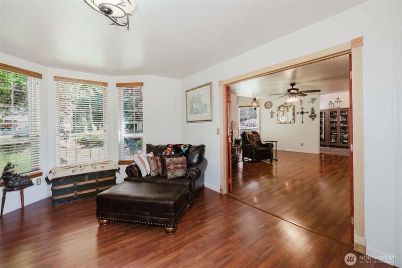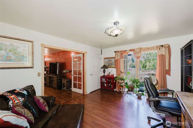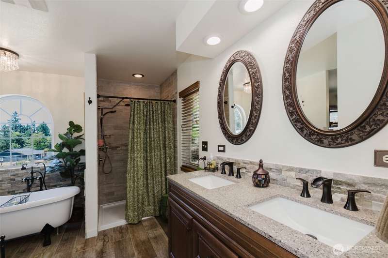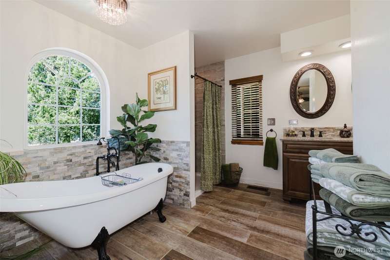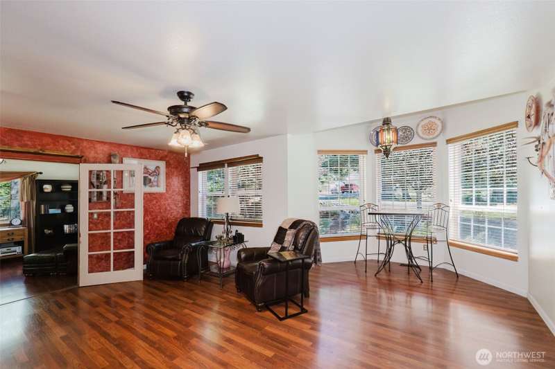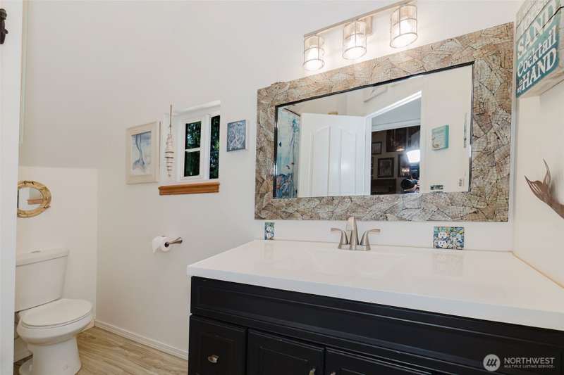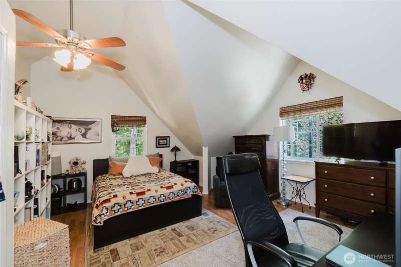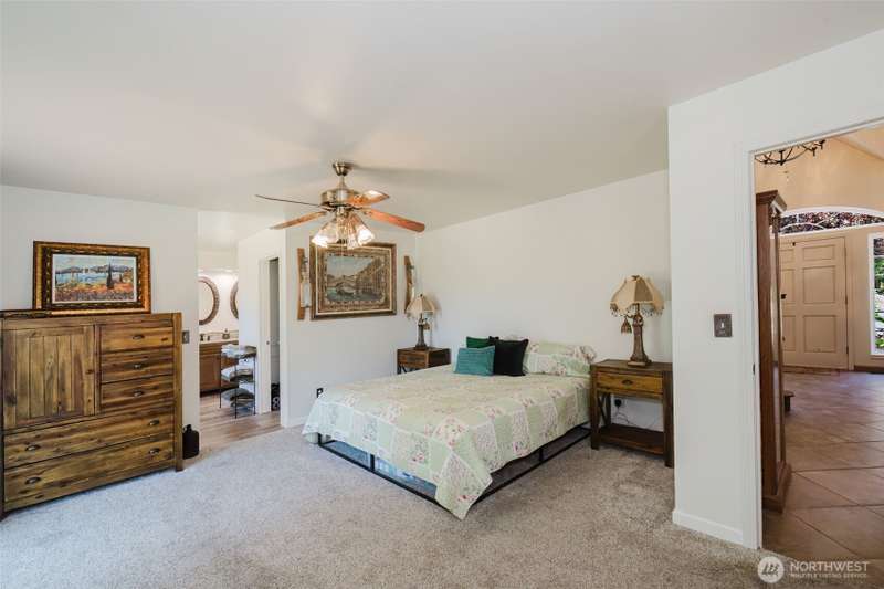 Delightful Peaceful setting with 3 br 2,5 bath unique floorplan. Lovely 1AC property with tranquil water POND feature w/ Koi greets you on a beautifully landscaped paradise! A Large Primary on main floor w/ gorgeous primary Bath & walk in closet, upper level features 2 bedrooms with Vaulted ceilings and a loft over looking 2 story entrance with Grand Staircase. French Doors lead to Private Deck with Gazebo and MT Views. This home lives large there is a formal DR, Chef's Kit, eat in Kit Nook, Office/Den and formal LR on main floor also. The 2 car Detached Garage has a finished Bonus room perfect for theatre rm, Exercise rM or Home Office. This is the one you've been Dreaming of. Easy commute to shopping, bases, ferries What a great CK Home!