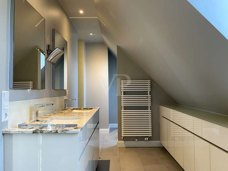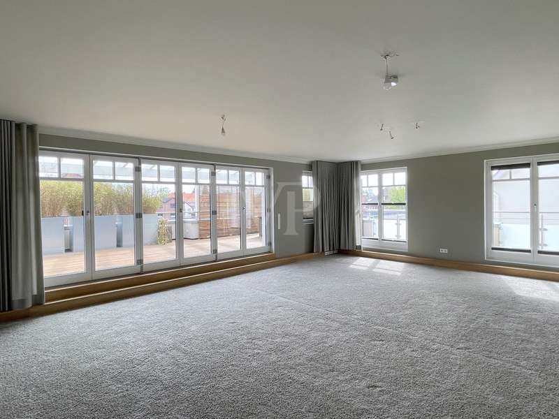 This stylish townhouse presents a very special luxury apartment for rent. The penthouse apartment, which is ready to move into, offers approx. 192.14 m² of living space on two floors and is equipped with a number of highlights. The high-quality apartment is in a prime location in the immediate vicinity of the city center. The central location allows you to enjoy urban life without having to give up the comforts of privacy! Inside, the apartment boasts an open-plan layout, bright rooms, high-quality furnishings and harmoniously coordinated materials and colors. The outdoor area naturally impresses with its extraordinary roof terrace: here you can enjoy a fantastic view while being protected from prying eyes! The terrace areas are lavishly covered and complement the existing living space perfectly. All in all, this fascinating and excellent apartment offers an ideal combination of modern architecture, high-quality fittings and an attractive location. We therefore look forward to hearing from you and being able to present this unique apartment to you on site!