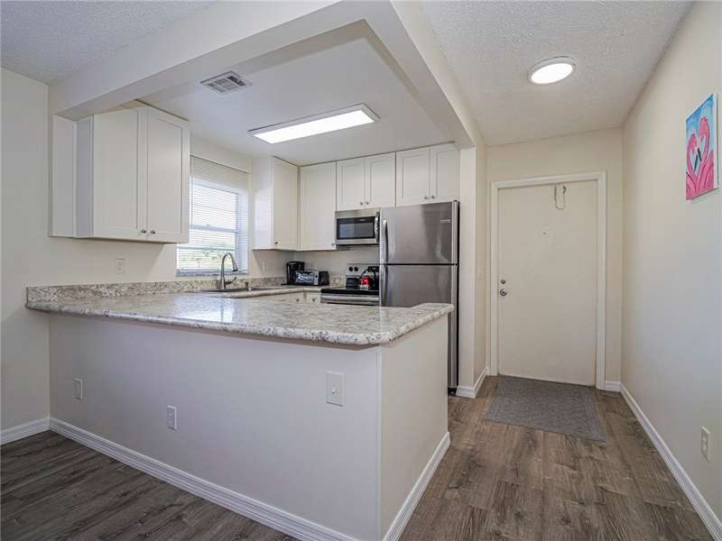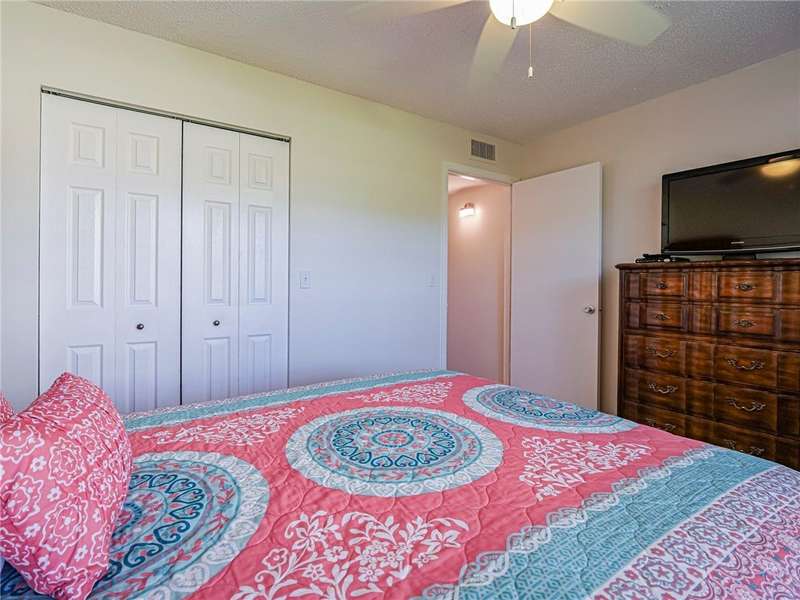 Desirable turnkey + highly sought-after 2 bed, 2 bath first-floor B-plan corner unit in prime location across from pool, clubhouse, tennis + shuffleboard! Immediate $10,000 income inheriting seasonal tenants if closed by December 31st! Thoughtfully remodeled interior features a spacious open plan w/ white kitchen + stainless appliances. This unit radiates cozy charm, bathed in natural light + complemented by an enclosed porch nestled beneath majestic oak trees. Vibrant 55+ community brimming w/ activities to embrace a lifestyle that's equal parts relaxed + rewarding. Close to the beach!