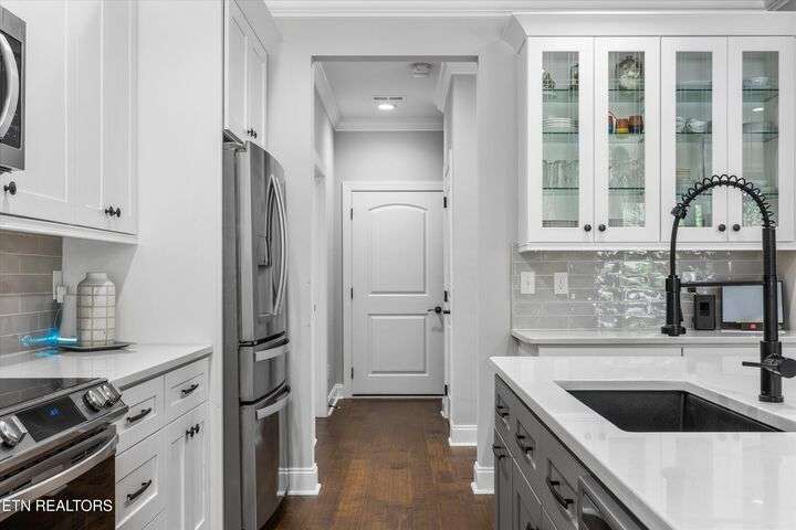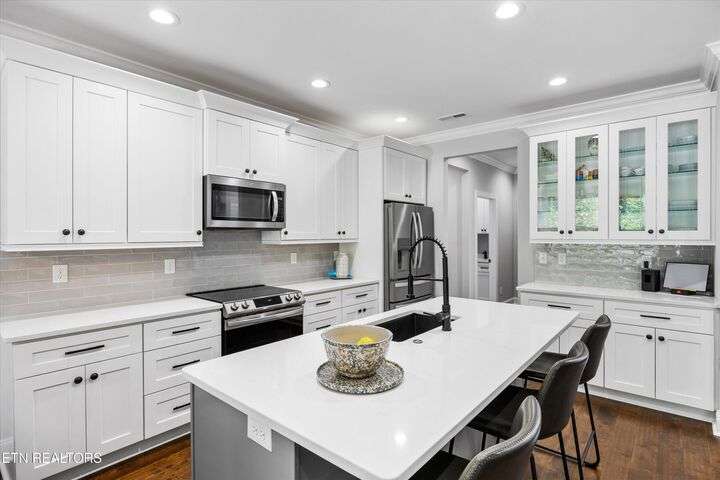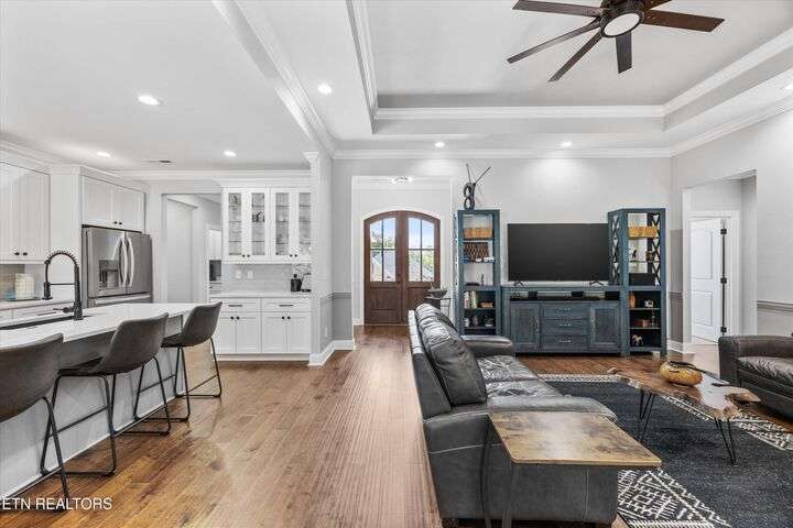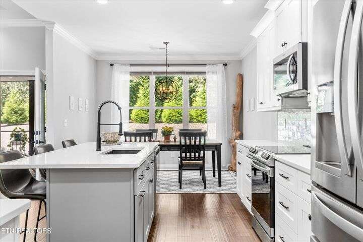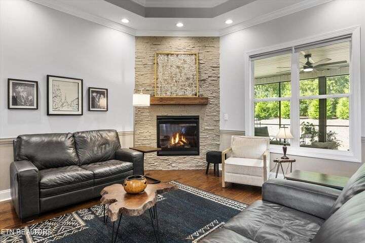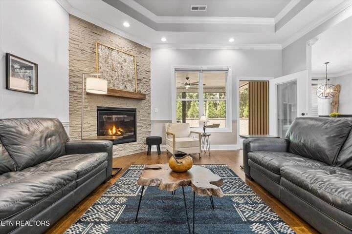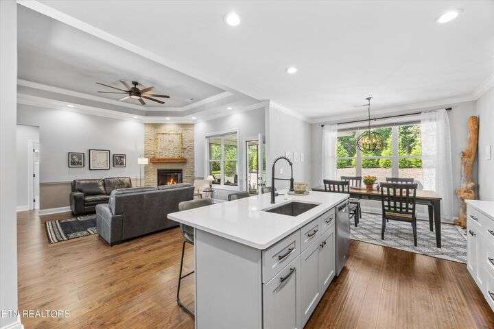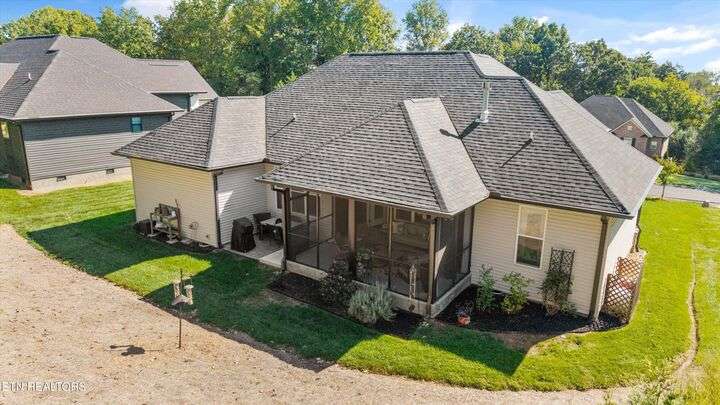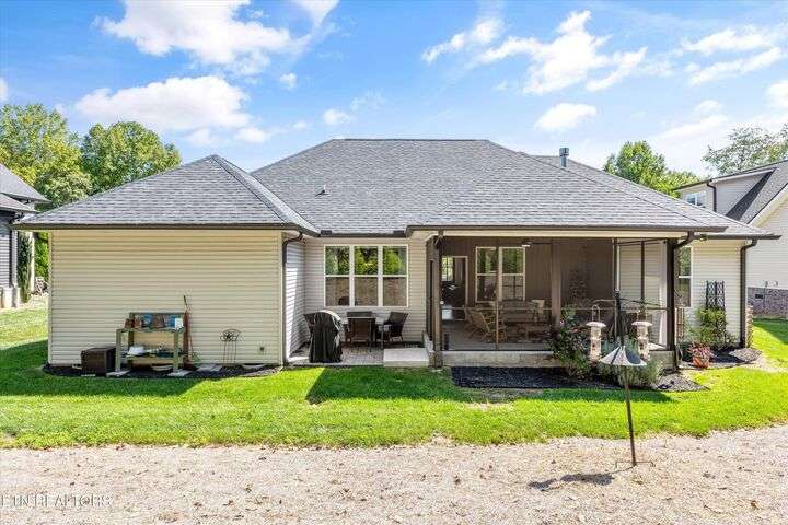Discover the perfect blend of elegance and comfort in this stunning Vitali built single-family ranch home located in Tanasi Shores, just steps away from the Yacht Club and Marina on the northern side of Tellico Village. You will greet guests in style at the beautiful entryway into the home that spans 2,069 square feet, this exquisite 4-bedroom, 2-bathroom residence features an incredible open floor plan bathed in natural light, showcasing high-end finishes and custom details throughout. The chef's kitchen is a culinary dream with granite countertops, a large island, and custom cabinets that seamlessly flow into the inviting living space adorned with engineered hardwood floors and a stacked stone surround fireplace beneath an impressive 11-foot trey ceiling. Retreat to your main bedroom suite that boasts a luxurious en-suite bath with a soaking tub for ultimate relaxation, 2 separate vanities and an over-sized ''WOW'' walk-in closet. The spacious bedrooms offer ample room for relaxation, while the guest bathroom's clever layout—with a double vanity separate from the tub and toilet—ensures convenience for family and friends. Whether you want to unwind on the screened-in porch during tranquil mornings or evenings, or entertain seamlessly on your patio perfect for grilling you don't have to choose- you can have it all! Ideal for move-up buyers or retirees seeking a lifestyle upgrade, this one-level living home provides easy access to lake amenities while offering both space and sophistication. Don't miss your chance to call this exquisite Vitali built home your new sanctuary! Vitali is a well- established Moldoven Home Builder known for his quality homes! Book your showing and come see for yourself!