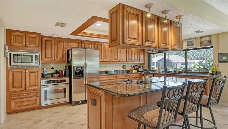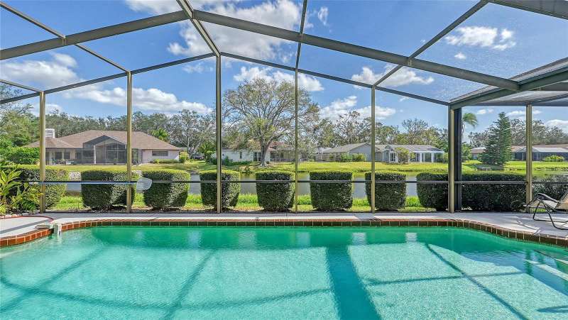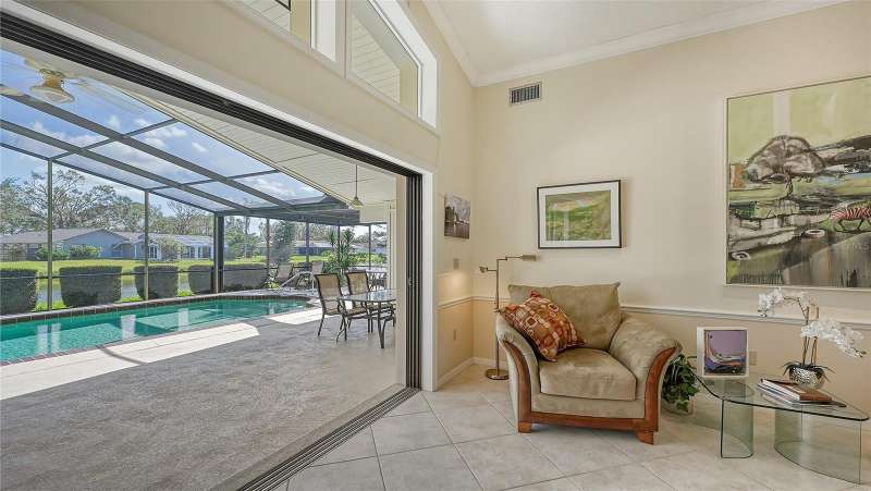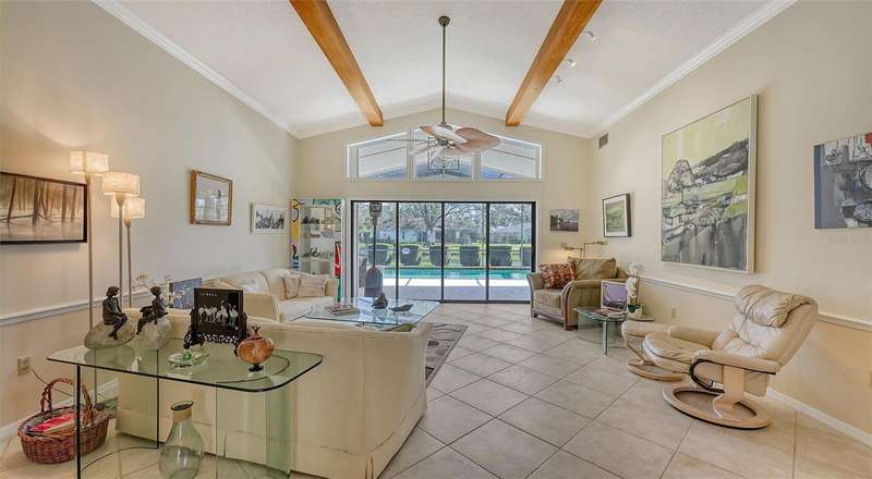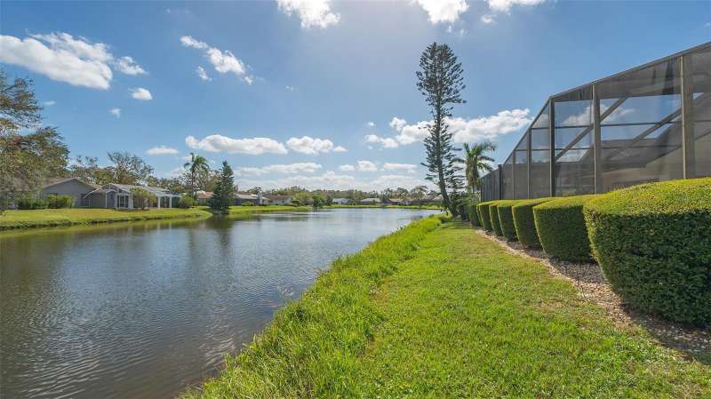 READY TO SELL! - MOTIVATED SELLERS WILL CONSIDER ALL OFFERS Move in condition home is ready for some future updates. Ample space to craft your private sanctuary. Welcome to Country Lakes, a quiet neighborhood, convenient to shopping and dining, and within the golf community of Palm Aire of Sarasota. This prime location is minutes from the UTC Mall, Sarasota-Bradenton International Airport and downtown Sarasota. Just a short trip to Lido Key, Siesta Key and Anna Maria Island beaches, this sprawling residence has a new roof (2023) and affords plenty of living space with magnificent lake views. With a living area of 3,260 square feet, this 3-bedroom, 3 bath home features large rooms including the inviting living room with a high, beamed ceiling and pocketing sliders, an office/den with French doors, and lots of storage. The kitchen opens to a beautiful family room with cathedral ceiling and a wood burning fireplace. The oversized screened lanai provides endless enjoyment of the outdoors and the full-size pool. (Pool heater new in 2022.) Optional membership in the Palm Aire Country Club offers amenities including two championship golf courses, tennis, pickleball, fitness center, dining and more. Take a look today!