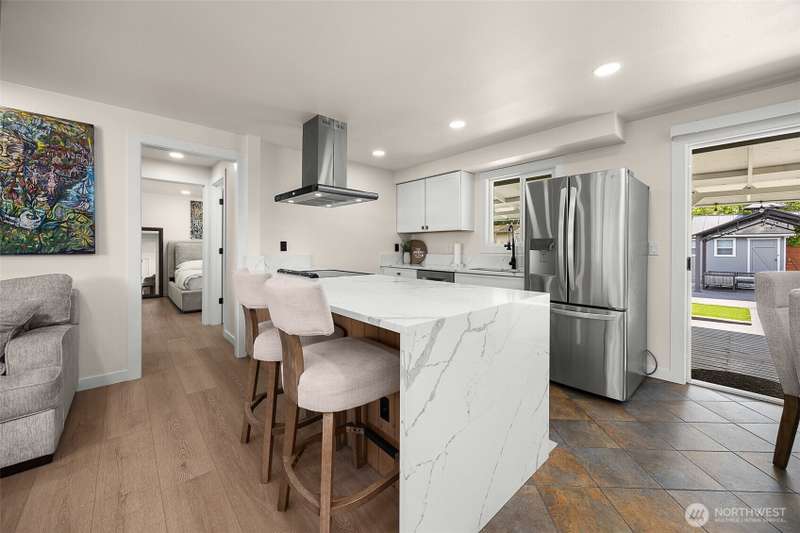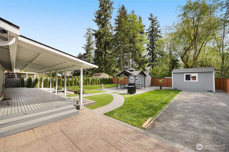 Extensively remodeled and upgraded! Gorgeous 3-Bedroom home with 1 Bath in South Everett! From the re-imagined façade, you’ll enter a single-story home that offers an open concept interior with the Great Room flowing into a stunning Kitchen, highlighted by expansive Quartz countertops and new cabinets. Go out to your park-like backyard, featuring a breath-taking new, full-length, treated Cedar deck and roof. Then step off the deck onto the new stone paver patio leading to the Gazebo, perfect for entertaining or relaxing, and storage sheds. Please refer to the attached documents for a list of all the recent upgrades. Very convenient to transit, I-5, Everett Mall, shopping & restaurants!