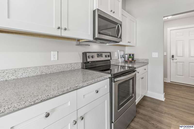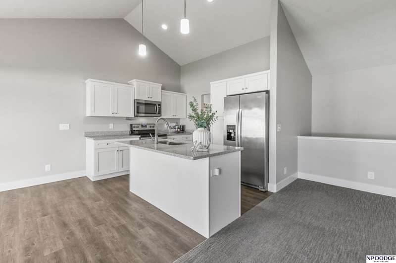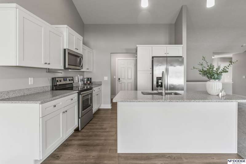 Maintenance-free living awaits in this beautiful zero-entry home featuring 3 bedrooms, 3 bathrooms, and a 2-car garage. Step inside to an open floor plan with upgraded counters, flooring, and fresh paint throughout. The kitchen comes complete with all appliances, while smart home technology adds convenience with smart locks, garage door, front door, and light switches on the entire main floor. The finished basement expands your living space with a spacious family room and cozy fireplace-perfect for entertaining or relaxing. This home blends modern comfort with smart living and low-maintenance ease, making it move-in ready and designed for today's lifestyle. Convenient Elkhorn location!