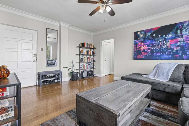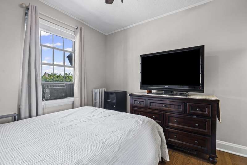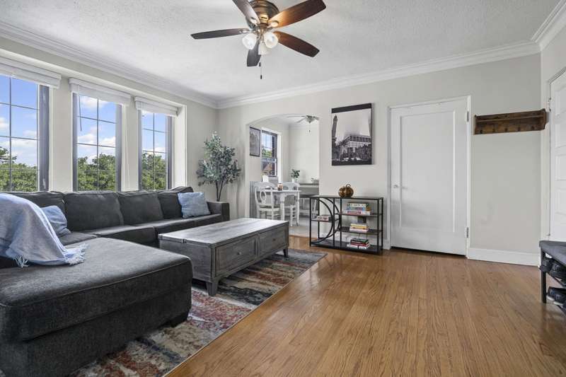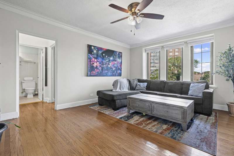 Adorable and affordable treetop condo in the heart of downtown Oak Park! Brimming with vintage character, this home features hardwood floors, tall ceilings, and striking black architectural windows. The smart floorplan makes the most of every inch-bedroom and bath are tucked to one side, seamlessly connected by a bright living room, dining area, and efficient kitchen, with plenty of closet space throughout. On-site amenities include laundry, storage, and bike parking. Located in a renowned brick courtyard building with convenient village permit parking in the garage next door. Just one block to Metra and the Green Line, and moments to Austin Gardens Park, Trader Joe's, Target, plus endless dining and shopping. Low taxes and HOA fees make this a perfect opportunity to own in Oak Park!