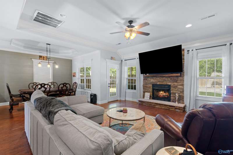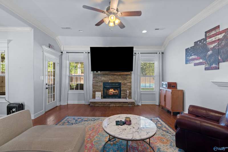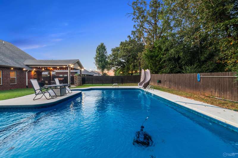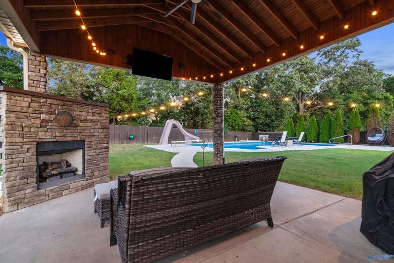 Indulge in luxury living at this meticulously upgraded home with a heated saltwater pool, outdoor fireplace, and pet-friendly amenities. Custom details such as trim work and accent walls add sophistication, while hardwood floors and a stacked stone gas log fireplace provide warmth. Trey ceilings enhance the Formal Dining, Breakfast, and Master areas, alongside a butler s pantry. The open floor plan effortlessly flows, connecting the kitchen with granite countertops and custom cabinets. Additional features include a 3-car side entry garage, 220V outlet for electric vehicles, and a full irrigation system. Embrace a lifestyle of elegance and comfort in this exceptional residence.