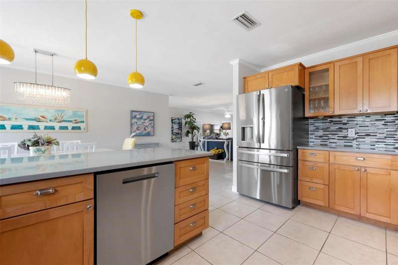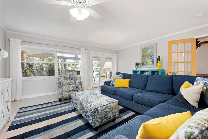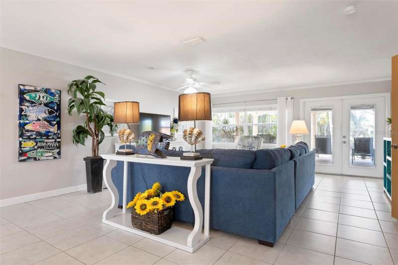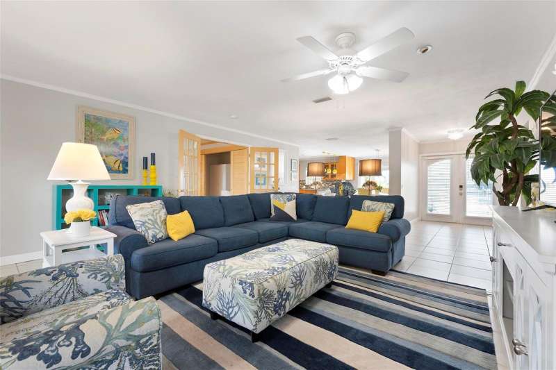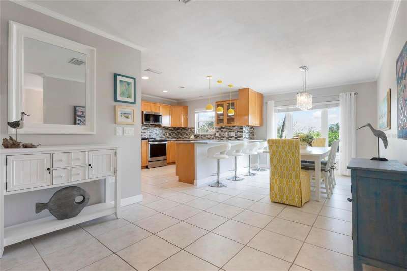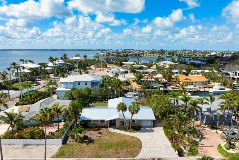 NEW METAL ROOF installed in 2025. Welcome to this lovely canal-front, turnkey furnished residence located in the exceptional Key Royale community, Anna Maria Island's premier neighborhood for boating and golf enthusiasts. This versatile 4-bedroom, 2-bath home is thoughtfully designed for relaxed coastal living, with the 4th bedroom currently serving as a bonus space, perfect for a home office, den, or guest room. Enjoy southern exposure and water views from nearly every room, including a spacious open-concept kitchen and dining area that overlooks the tranquil canal at the front of the home. The kitchen features solid wood cabinetry, quartz countertops, and new stainless-steel appliances, blending functionality with coastal elegance. Step outside to a large covered patio, ideal for entertaining family and friends or simply relaxing by the water. Situated on nearly a 10,000 sq ft lot, the home offers seamless indoor-outdoor flow, with a total of 2,826 square feet under the brand-new metal roof, designed for both comfort and versatility. Boaters will appreciate the private dock with a boat lift, offering quick access to Tampa Bay and the Gulf of Mexico. Whether you're seeking a primary residence or a second home getaway, this property delivers the perfect blend of lifestyle and location. Don't miss your chance to own in one of Anna Maria Island's most sought-after communities, schedule your private showing today! 3D walkthrough and floor plan available upon request.