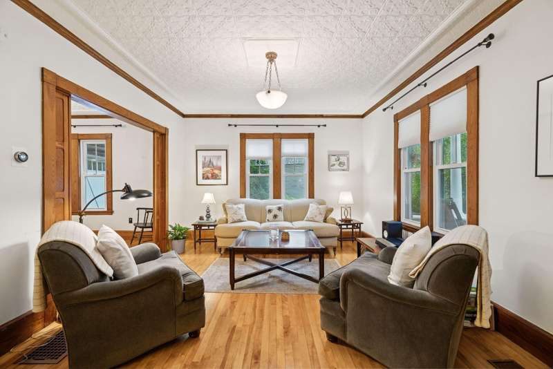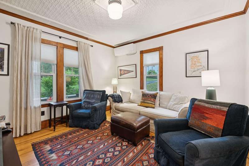 This 3 bedroom, 2.5 bathroom home blends historic character and charm with modern updates and improvements. Formerly known as the Warren Street School, this single family residence features gorgeous woodwork and craftmanship, tin ceilings throughout the living room, dining room and first floor bedroom and/or office, a built-in china, cabinet and a landing on the second level with a built-in bench seat with storage. The spacious primary suite includes a sitting room and a full bathroom. An attached two car garage provides access to the home through a mudroom with a lighted double closet. The full walk-out basement opens to a fenced in back-yard. Modern updates include the heating system, the on-demand hot water heater and two heat pumps all installed in 2019. Sit on the front porch or the private back deck with your morning coffee to greet the day. The property is within walking distance to downtown Hallowell, the public dock overlooking the Kennebec River, the local farmers market, and the rail-trail. WOW! Call Sprague and Curtis to schedule your showing today! (207) 623-1123