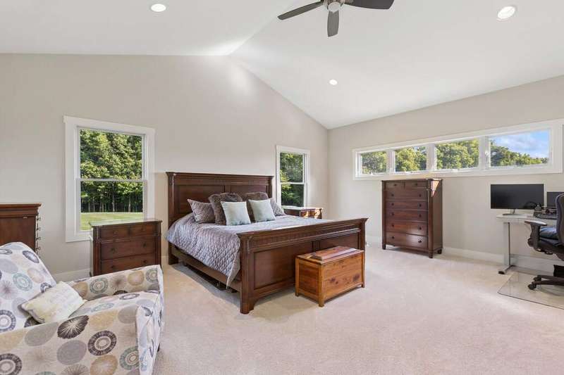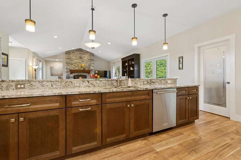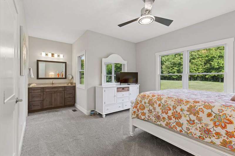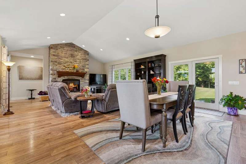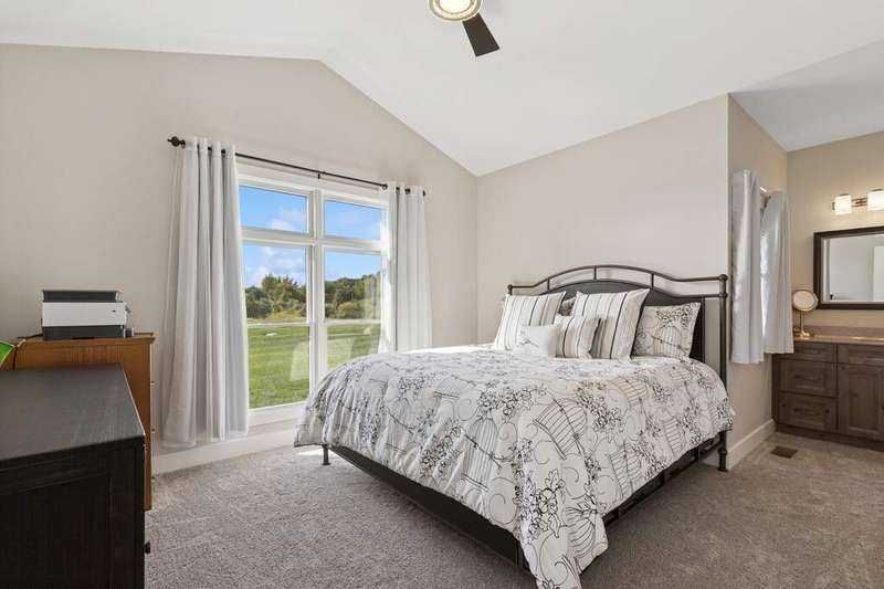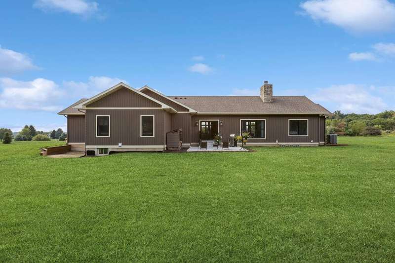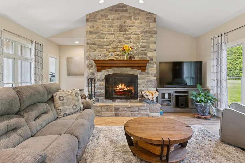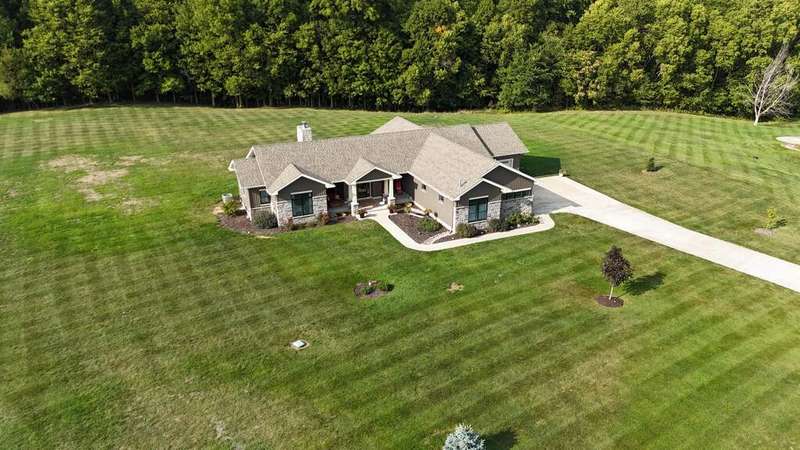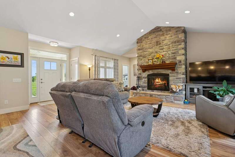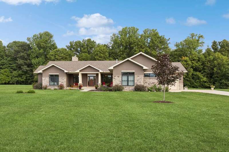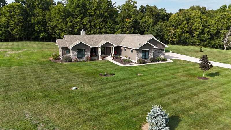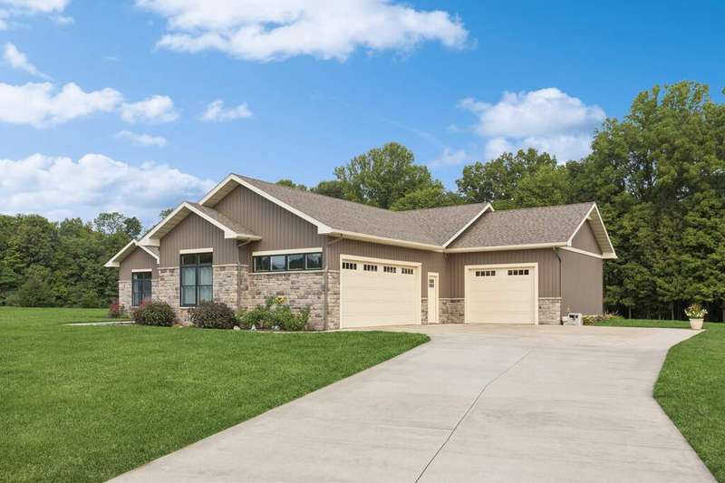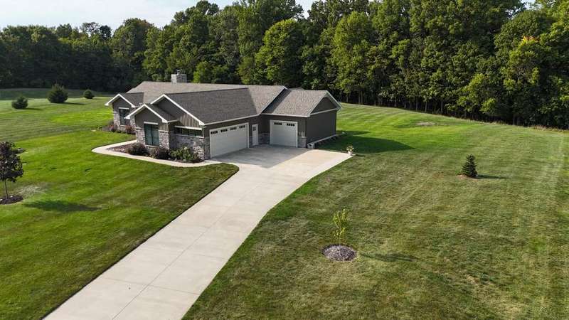 Welcome to this beautifully built home that combines timeless quality with modern comfort. Designed with all your daily needs on one floor, the open floor plan features a stately fireplace in the great room, gorgeous floors, exquisite hickory & maple cabinetry, quartz countertops, and a spacious walk-in pantry. Main floor primary w/soaking tub, walk in shower, and neutral decor throughout. Functionality meets style with a large laundry room, mudroom/landing area, along with a 3+car, heated garage. The full basement, boasting 9-foot ceilings and daylight windows, is ready to be finished to your liking-perfect for a recreation room, home theater, or gym. Step outside and enjoy the covered front patio as well as beautiful backyard patio overlooking gorgeous wooded area. Many upgrades throughout including 400 series windows, 30 year shingles and 500 gallon propane tank. Truly ready to move into! for car and truck enthusiasts! The full basement, with 9-foot ceilings and daylight windows, is insulated, framed, and plumbed for a full bath ready to be finished to your style. Outdoors, enjoy the tranquility from the covered front porch, or watch deer and other wildlife from the backyard patio overlooking a private wooded area. Loaded with upgrades and truly move-in ready, this home is a rare find.