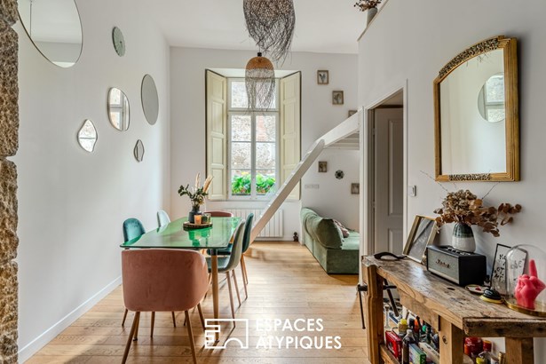 Exclusive: Located in the heart of Nantes, a stone's throw from Place Eugene Livet, this charming one-bedroom apartment offers a Carrez surface area of 60.22 sqm (67.76 sqm floor area). Nestled on the ground floor of a small condominium, it stands out for its individual access and warm atmosphere, combining a bohemian spirit with contemporary touches. The space perfectly combines functionality, character, and privacy in an urban setting with no overlooked vis-a-vis, protected from the hustle and bustle of the city center. The entrance opens onto a fitted and equipped kitchen, which naturally extends into a pleasant, generously sized living room. Natural materials, such as solid wood flooring and exposed stone, blend harmoniously with the neat decor and tastefully selected furniture. A hallway leads to the bedroom, a truly luminous cocoon with built-in storage. The adjoining shower room with WC completes this level. Overlooking the property, a cleverly designed mezzanine accommodates an office area and an additional sleeping area, optimizing the beautiful ceiling height. Although it has no exterior, this property nevertheless benefits from a privileged living environment thanks to its private entrance and appreciable calm. Its hyper-central location allows you to enjoy all amenities on foot: shops, schools, transport and cultural venues. Unique in its design, this apartment seduces with its character, its atypical lines and its ability to combine privacy and conviviality. Offered for sale fully furnished, it represents a rare opportunity for lovers of unique living spaces, ready to put down their suitcases. Property subject to co-ownership status: 14 residential lots Annual charges: EUR646.52 Information on the risks to which this property is exposed is available on the Georisques website https://www.georisques.gouv.fr Energy class F / Climate class C, Estimated average amount of annual energy expenditure for standard use, Average energy prices indexed for the years 2021, 2022 and 2023 (including subscriptions): between EUR1,890 and EUR2,610 per year. Contact: Carl HAMON 06 07 59 91 73 EI carl.hamon@espaces-atypiques.com RSAC 2019AC00072 NANTES