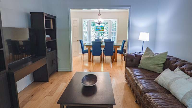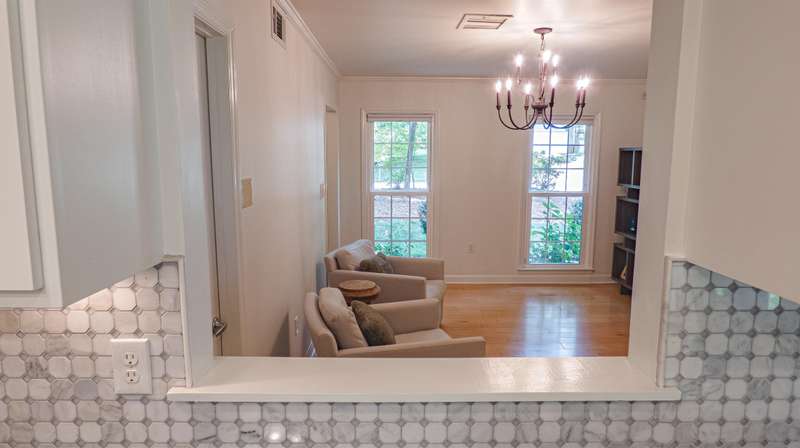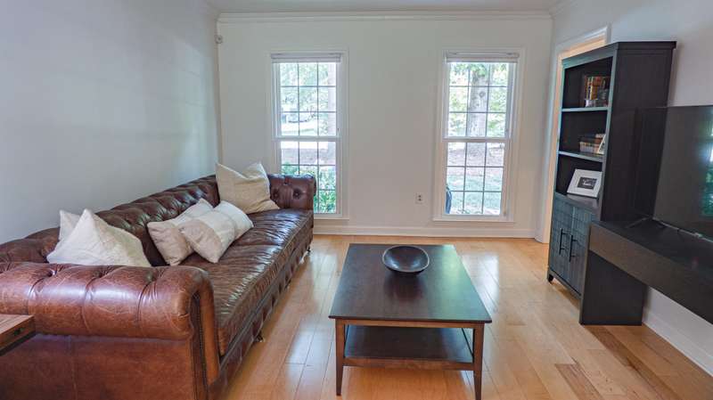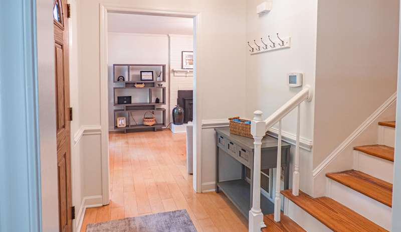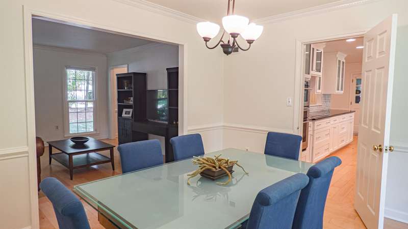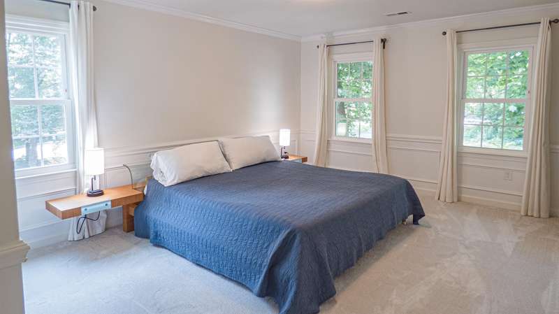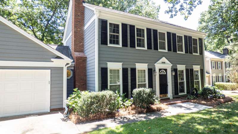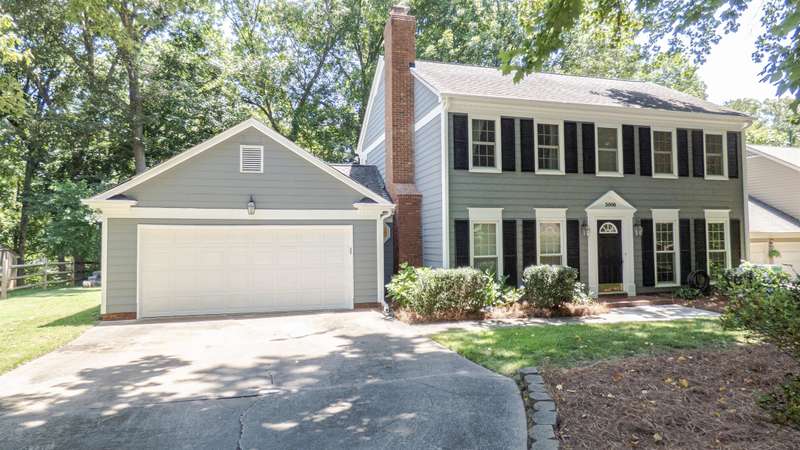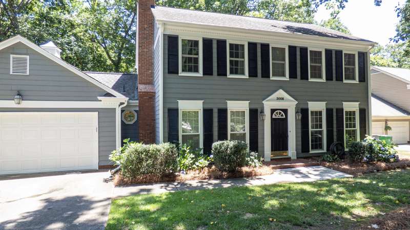 Tucked into a private, park-like setting, this home offers the perfect blend of natural beauty & thoughtful updates. Step out onto the screened-in porch or deck overlooking the serene, wooded lot with fire pit & direct access down a charming path to the Clark Creek Greenway near the Mallard Creek Greenway connection. Inside, the updated kitchen features granite countertops, a tile backsplash, wall oven, stainless steel appliances, and a functional pass-through to the family room. The main level showcases hardwood floors, a welcoming living & dining room with a sunny bay window, & a warm, inviting family room centered around a wood-burning stove with painted brick surround. Upstairs, the primary suite includes a beautifully renovated bathroom with tiled shower and inlay detail. The oversized 2-car garage and outbuilding are great for storage. A new water heater was just recently installed, carpet was replaced 2024, & exterior was painted in fall 2023. Fiber optic Internet is available.