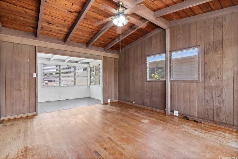 An amazing opportunity to own a single-family home in the centrally located Halawa Valley Estates subdivision. Tucked away on a quiet street, this 3 bedroom home has a simple and functional floor plan, high open beam ceilings in the living room, a fresh coat of exterior paint and has been recently tented. Bring your architect and your contractor to explore all of your possibilities to renovate, expand or even build new. Conveniently located near freeway access, Pearl Harbor, the airport, shopping, schools, restaurants and lots of potential with the new stadium coming! Property sold "as-is, where is."