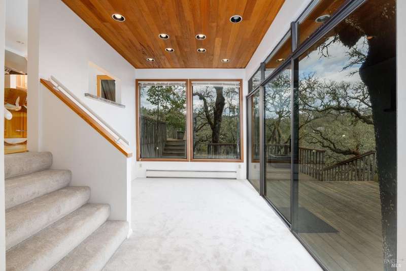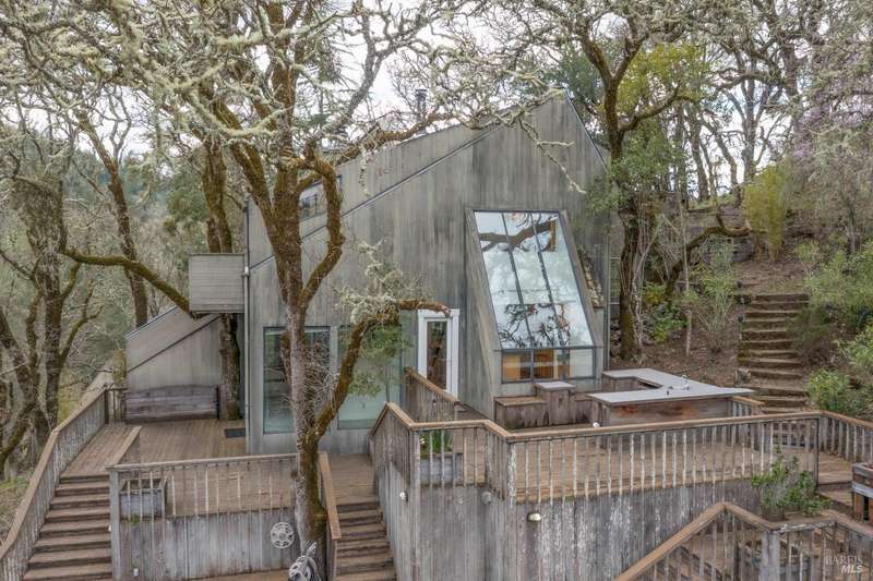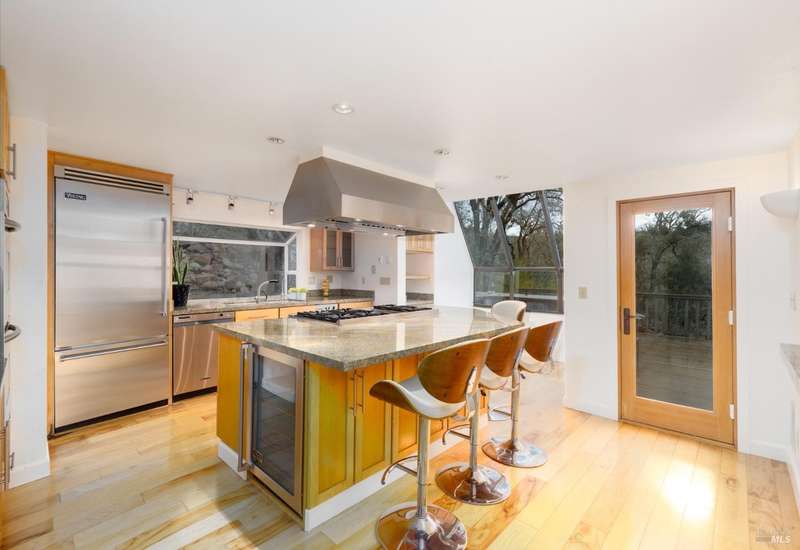 Situated on 3.2 acres, adjacent to Safari West, 10 miles from Calistoga and 20 miles from Healdsburg, your wine country lifestyle begins here. With a cool vibe of Big Sur Meets Sea Ranch, The main house is spacious with stylish architecture and expansive views. Upgraded kitchen with Viking appliances offers a large island for entertaining. During the winter, cozy up to a fireplace or one of the wood burning stoves. Additional spaces include a cottage, studio and workshop. Explore options for a future hobby vineyard, orchard and horses. Access to Safari West for riding and hiking trails. Bring your imagination. Great Potential.