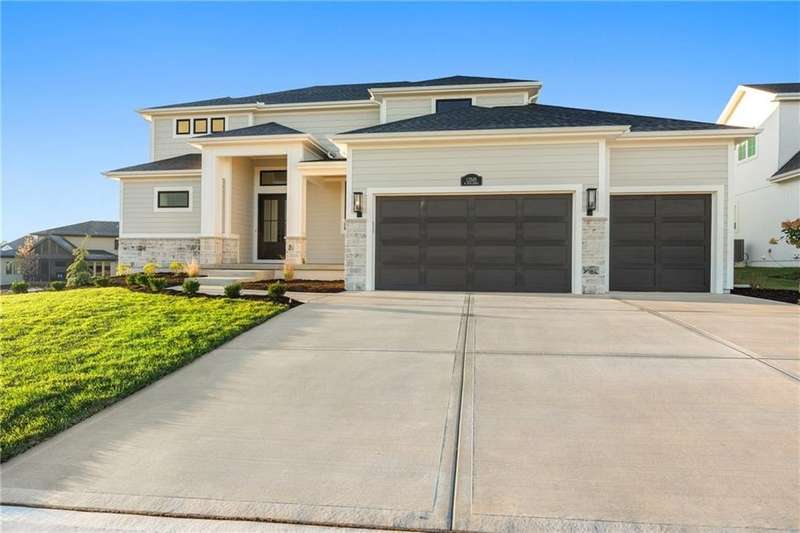 The Woodland 1.5 Story by JFE ready for summer 2026 move in on lot 200 in a private cul-de-sac with LARGE trees in the back yard. This spacious 1.5 Story is over 3300 square feet and the perfect layout with soaring ceiling sin the great room and a 5th bedroom on the main level and bonus loft space upstairs. The price includes premium upgrade features and lot of extras. Stunning curb appeal with a modern exterior of stucco and real stone trim. There is still time to make your custom design selections on this one as it's under construction. **This home is currently UNDER CONSTRUCTION and photos are from a previous model home** Century Farms has a spectacular clubhouse with a fitness center, resort style swimming pool with a slide. There are plenty of neighborhood activities with a fire-pit, two pickle-ball courts and a basketball hoop, farm themed animal kids play area, wildflower walkways and community garden. Century Farms is conveniently located near the brand new Bluhawk shopping center, Heritage Park, the Johnson County Trail system and the Overland Park Arboretum. Come join the fun in Century Farms, a unique one of a kind upscale new home community in Overland Park. BLUE VALLEY SCHOOLS