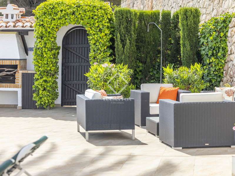 Located just a short stroll from the tranquil waters of La Barraca Beach, this beautifully presented 4-bedroom villa offers timeless Mediterranean style with a clean, elegant design and modern comforts throughout. Blending traditional charm with contemporary amenities, this is a rare opportunity to own a home in one of the most exclusive and sought-after areas of the Costa Blanca. This beautifully renovated villa, completed in 2023, offers the perfect blend of traditional charm and modern convenience. Located in one of Javea's most desirable residential zones, the property enjoys a peaceful and private setting with panoramic views of the coastline and surrounding natural beauty. Set on a manicured 942?m² private plot, the home features four spacious bedrooms and generously proportioned living areas filled with natural light. The open-plan interiors include a cosy fireplace, gas central heating, and hot/cold air conditioning, ensuring year-round comfort. Outdoor living is at the heart of this property. It boasts two expansive naya terraces, one open and one covered, ideal for entertaining or relaxing while enjoying sea breezes and stunning views. A west-facing terrace provides winter sun, while several other open terraces are surrounded by beautifully landscaped gardens. The saltwater swimming pool adds to the luxurious outdoor experience. Energy efficiency is enhanced with solar panels, reducing running costs and environmental impact. Practical features include a garage, double carport, and multiple storage rooms – perfect for parking, hobbies, or extra storage. Conveniently located within walking distance to La Barraca beach, nearby restaurants, and coastal paths, the villa also offers easy access to golf courses, international schools, medical clinics, and supermarkets. Whether seeking a serene coastal retreat, a stylish family residence, or a smart investment with strong rental potential, this home offers comfort, character, and captivating views in equal measure. Designed for harmonious indoor-outdoor living, it perfectly complements the exceptional Mediterranean lifestyle. Please contact us for further information.
