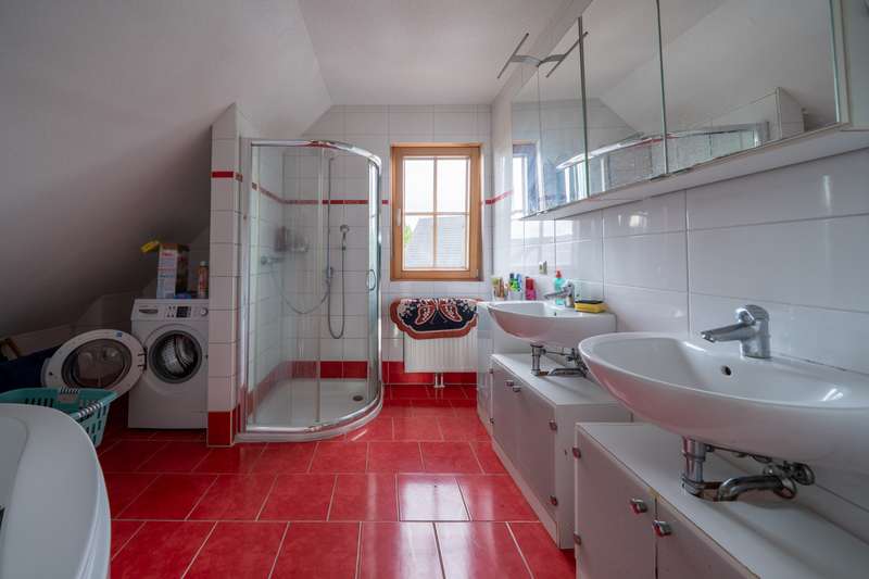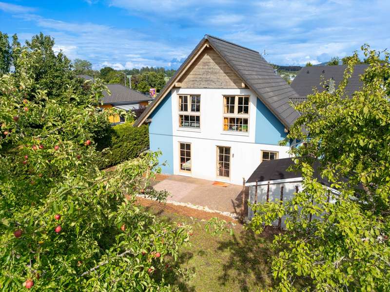 This attractively designed house, built in 2008, presents itself in well-kept condition and offers plenty of space for the family on approx. 123 m² of living space and a total of 5.5 rooms. The quiet surroundings and the spacious plot of approx. 747 m² create ideal conditions for relaxing hours outdoors and a wide range of garden design options. The heart of the house is the open-plan living and dining area, which floods the entire room with natural light thanks to several terrace entrances and large windows. Here you can enjoy a pleasant living ambience. From here you have direct access to the spacious terrace and the large garden. A practical garden shed creates additional storage space for garden tools or can be used individually, for example for hobby purposes. The room layout is well thought-out and family-friendly. There are a total of four bedrooms, which can be flexibly arranged as children's rooms, study rooms or guest rooms. Two bathrooms and a separate WC ensure the greatest possible comfort, especially in the mornings or when there are several people in the family. The floor coverings of tiles, laminate and in some cases carpet create a homely atmosphere in the respective areas. The property was built as a mixed construction (prefabricated building + brick wall on the first floor) and has gas central heating. The windows are made of wood insulating glass. The interior corresponds to a normal quality of furnishings and is underlined by the well-kept condition - minor renovations and you can move in. The entire house offers ideal conditions for families or for combining living and working in a home office. The offer is rounded off by a large courtyard in front of the house, which serves as a parking space for vehicles. It is possible to build a double carport here. Furthermore, the building window was not exhausted with the construction of the house - if you would like more living space despite the space already available, an extension is perfectly feasible. We look forward to hearing from you for further information. Your VON POLL real estate team in Villingen-Schwenningen