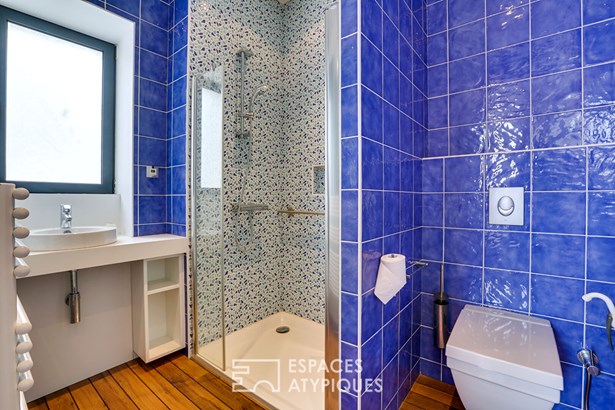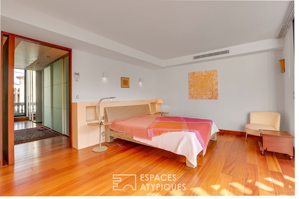 The first level houses a vast master suite of generous proportions. Its custom-made dressing room, its bathroom with a whirlpool bathtub and a walk-in shower, as well as its suspended terrace overlooking the garden create a true cocoon of well-being.