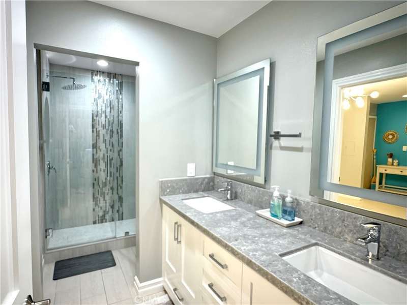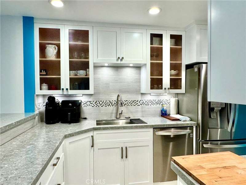 Beautifully remodeled ground-level fully furnished condo just steps from the beach, Pier, harbor, and local dining. This 1-bedroom + den/office, 1-bath home offers an open layout with designer tile flooring, custom closets, and spa-like bathroom with double vanity and rain shower. The stylish kitchen features new cabinets and countertops, stainless steel appliances, and a breakfast bar, opening to a bright living/dining area and patio perfect for morning coffee or alfresco dining. The den includes a Murphy bed for guests. Includes 2 designated garage parking spots. Ideal for executives or anyone craving the coastal lifestyle.