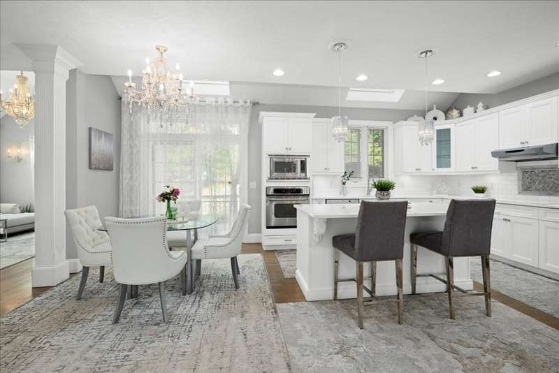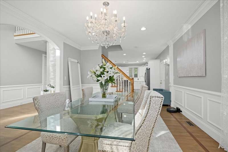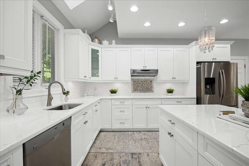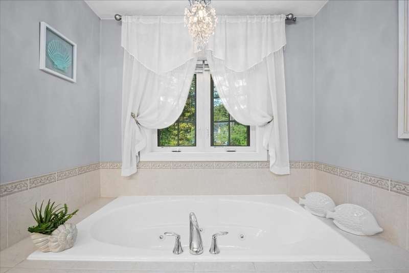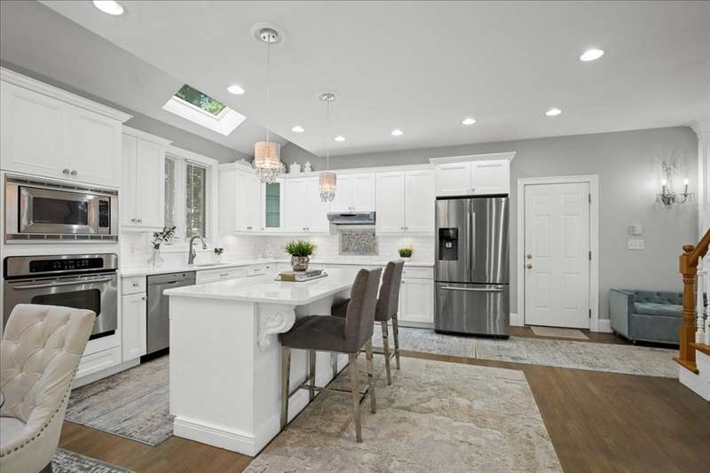 Dramatic, Outstanding, Mint Condition Transitional Colonial w/decidedly Modern look & feel located on a Cul De Sac*Welcoming Foyer w/Designer Chandelier sets the stage*Incredible renovated custom White Kitchen w/upscale Quartz counters, tiled backsplash, Center island w/Corbels, stunning Natural Stone decorated Wall & eating area enjoys sun from Skylights, Slider & transom windows*Lovely Open Floor the Kitchen opens to impressive Cathedral Ceiling Family Rm w/Fireplace & Skylights*Multi-Generational Option Living w/Office or First Floor Bedroom w/Walk in closet & private Full Bath*Romantic Primary Suite w/Vaulted Ceiling Sitting area, sumptuous bath w/Jetted tub & Walk In Closets*3 Additional Bedrooms & Full Bath located on the Upper Level*Impressive Designer Chandeliers, 8ft Doors on 1st Floor & Plethora of Recessed Lighting*Extensive Landscaping has been completed w/Walkways, Professional Landscaping Lights, Flower Beds, 40+ Emerald Green Arborvitaes & Storage Shed*Don't Miss Out*