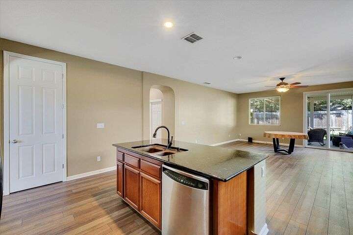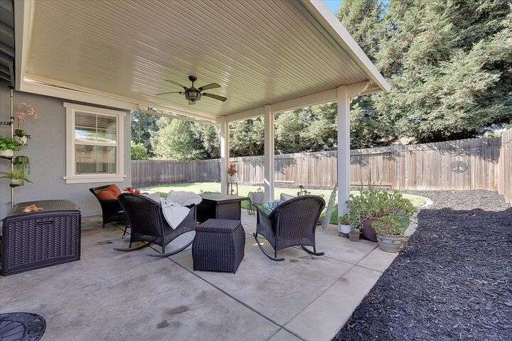 Discover this stunning 3-bed, 2-bath residence in desirable Rancho Cordova, offering 1,650 sqft of exquisite living space. Immerse yourself in a fresh environment with brand new interior & exterior paint, along with new flooring throughout. Enjoy a serene escape in the gorgeous backyard, featuring a covered patio & tranquil sitting area perfect for relaxation. The wide driveway offers ample parking space, ideal for families. Located in the peaceful Sunridge neighborhood, you'll have easy access to nearby parks and the renowned Elk Grove School District, making it an excellent choice for families. Seamless commuting elevates the convenience of this charming home, situated in a quiet, welcoming community. Experience modern elegance and comfort tailored to your lifestyle.