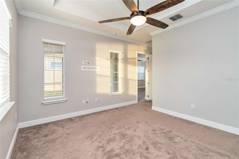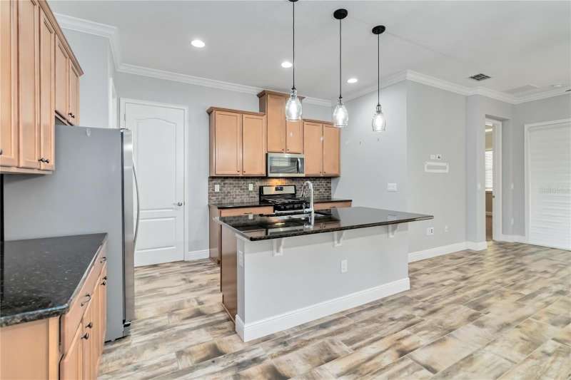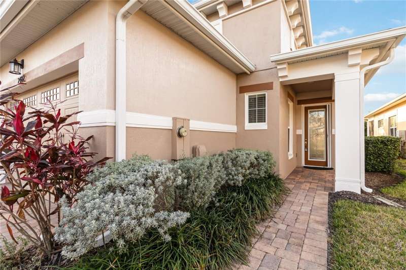 Welcome home to this Absolutely Beautiful Amelia floor plan located in the well sought after Gated 55+ Active Del Webb Twin Lakes community. With a water view. Walk into the breathtaking property featuring stunning custom glass insert in the front door, wood plank tile flooring and custom crown molding throughout. Upgraded kitchen Cabinets with custom molding, subway tile backsplash, Island features custom subway tiles, walk-in pantry, custom granite edged countertops, pendant lights, and chandelier. The living room features custom blinds. Sliding glass doors lead to screened in Lanai with custom ceiling fan & light to enjoy your morning coffee and view of the water. Master bedroom with blinds, trey ceiling, and ceiling fan. The master bedroom bathroom features custom glass doors, diamond shaped flooring in the shower, and custom tiling. Double vanity quartz edged countertops, brush Nickel hardware. Large, carpeted walk-in closet. Laundry room tailored with upgraded upper cabinets as well as lower cabinets for great storage, tile flooring, and beautiful granite countertops. Guest bedroom ceiling fan with light and faux wood blinds. Amenities include a Resort style pool, Lap Pool and 3rd pool on the carriage house side, 20,000 square foot Gorgeous Clubhouse, State of the art Fitness Center, Flex room, Tennis Courts, Putting Green, Walking Trails, Pickle Ball Court, Fishing, and Pontoon Boats and Jon boat to use on Live Oak Lake! The community has many active and socializing activities. View today!