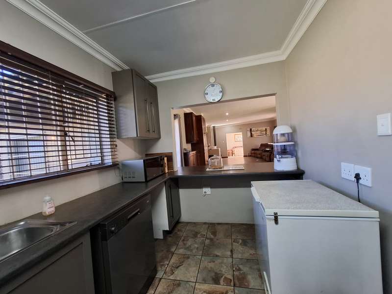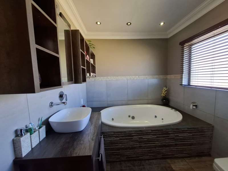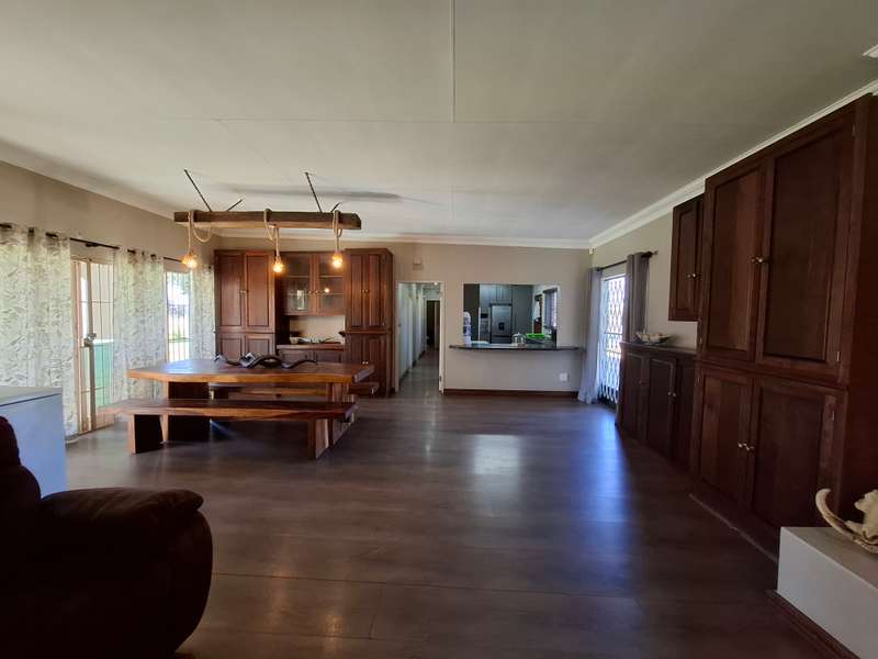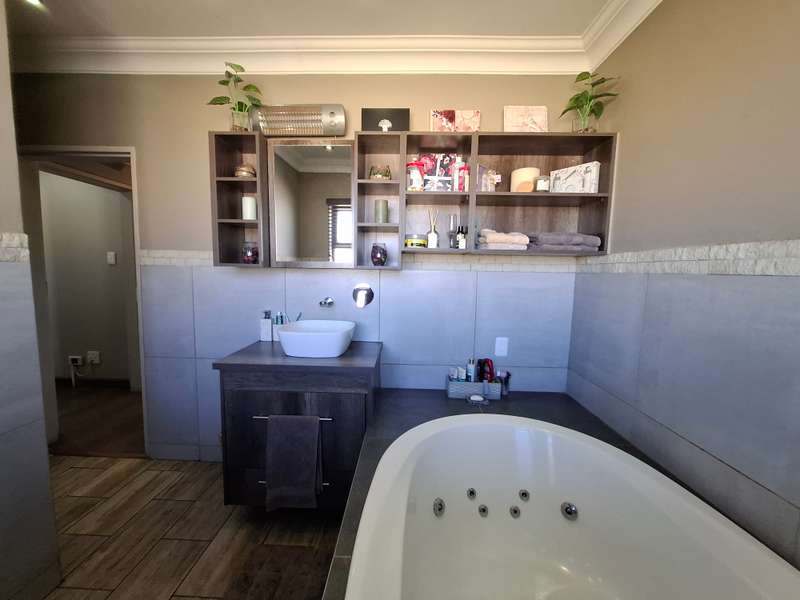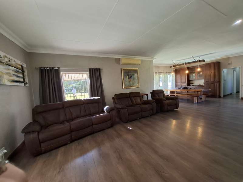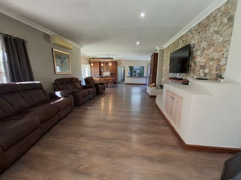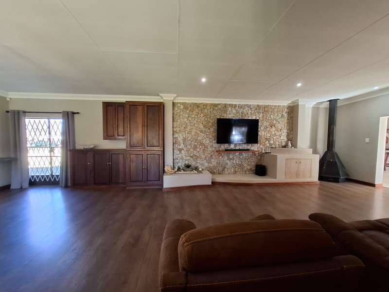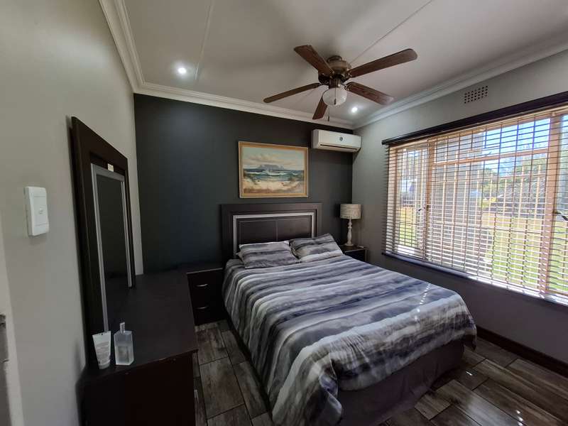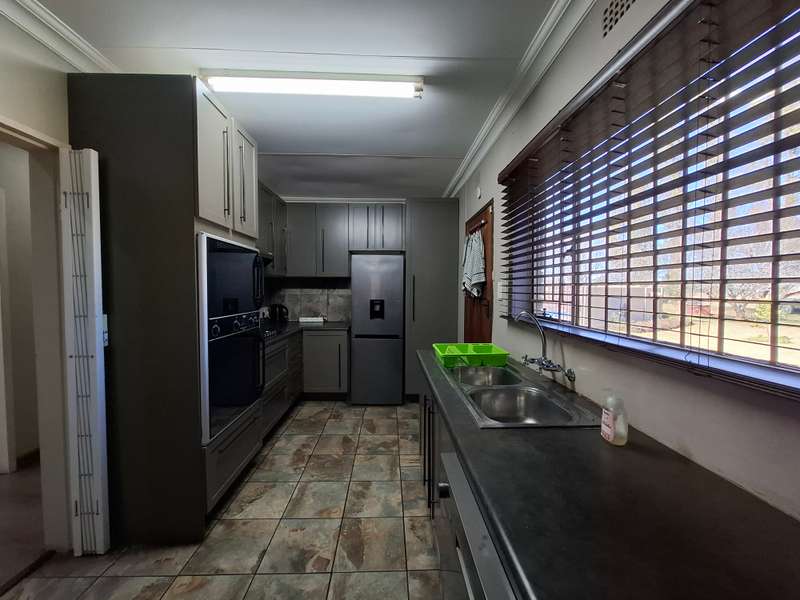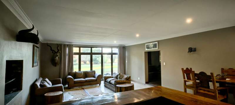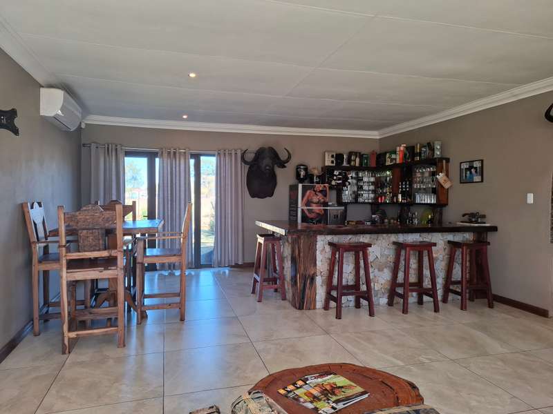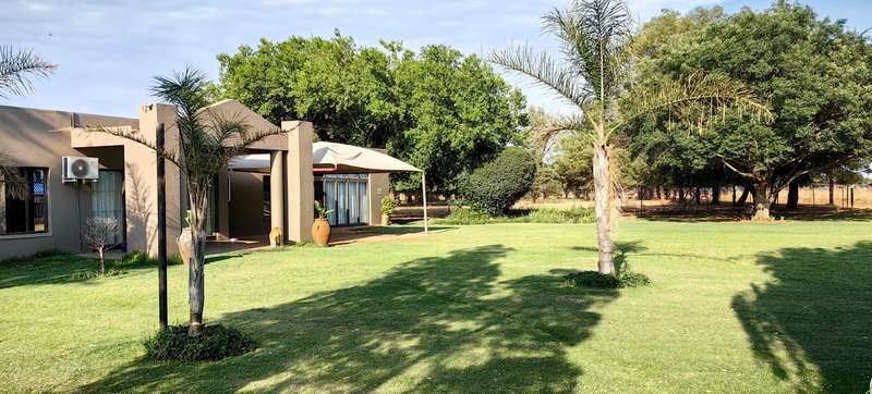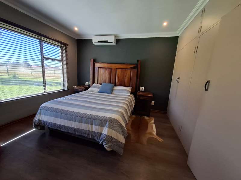 Whether you're looking for a smallholding with potential for agricultural activities or an extravagant family home, this exceptional property in Eloff offers the best of both worlds. Don't miss the chance to live contemporary in a spacious, tranquil setting! This gorgeous and modern house offers luxurious living on a 2.2-hectare smallholding in the countryside near Delmas. This ultra-modern home is perfect for those who appreciate practicality and style. There is a big entertainment area with a built-in braai and a solid wood bar with bar stools. With air conditioning, this space is perfect for hosting events all year round. The spacious open-plan lounge and dining area also has an air conditioner, a gas fireplace, and a cozy fireplace. The contemporary, spacious kitchen is a dream come true, including a breakfast nook, a serving window, and an abundance of storage space. With a gas stove, this kitchen is both stylish and quite useful. All three of the house's spacious bedrooms include built-in cupboards, laminate floors, ceiling fans, and air conditioning. The luxurious main bedroom with its modern en suite bathroom, which features a spa corner bath, toilet, and basin. Another bathroom with a sink, toilet, and bathtub will be more practical for both visitors and family members. Outside, a spacious, lovely pool with a breathtaking fountain, ideal for relaxation and outdoor pleasure in the summer. The property features a spacious storeroom/workshop, an outdoor laundry, with rich red soil that is perfect for farming. There are thirteen mature pecan nut trees, and a variety of fruit trees is another advantage of irrigation. For added convenience and security, have a full security system that includes CCTV, an alarm, and electric fencing around the house and the entire property. The property boasts a reliable borehole that generate 16 000 liter of water per hour with a Jo-Jo tank that ensures a steady supply of water, as well as three-phase electricity.
