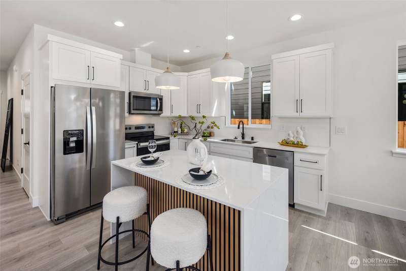 Charming new build in Tacoma by Washington design group! This home comes with 3 bedrooms & 2.5 baths. The main level features a great size living area with an open concept kitchen that has quartz countertops, tile backsplash and Stainless Steel appliances. LVP flooring throughout the house. Large primary bedroom that comes with its own private bathroom and walk-in closet. This home also comes with AC on the main floor & fully fenced backyard, located close proximity to JBLM, PLU, shopping/dining centers, hwys & bus routes for commuters.