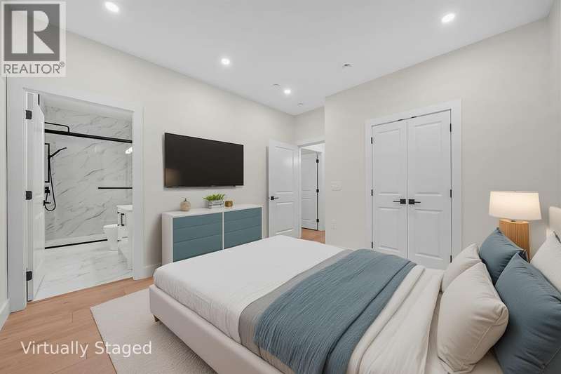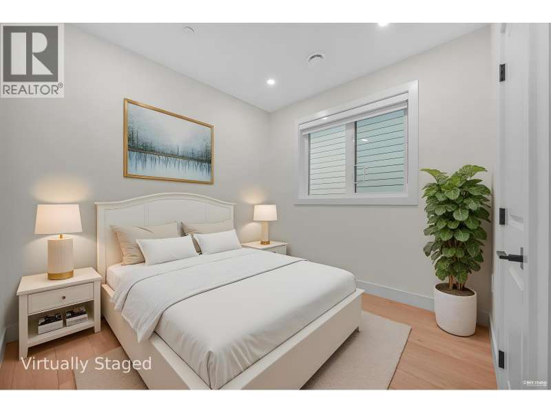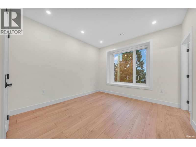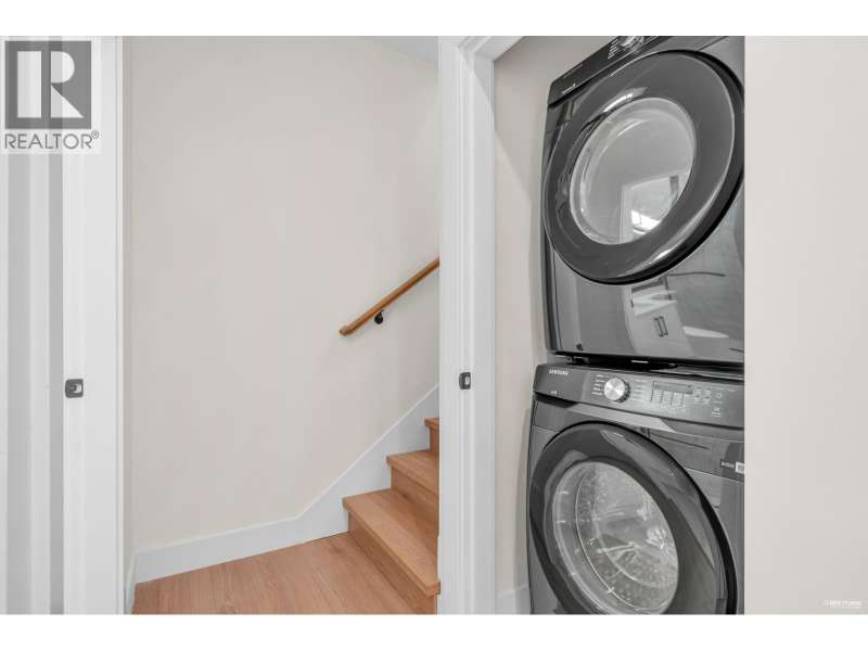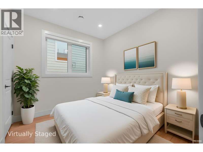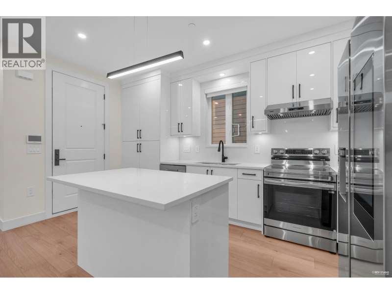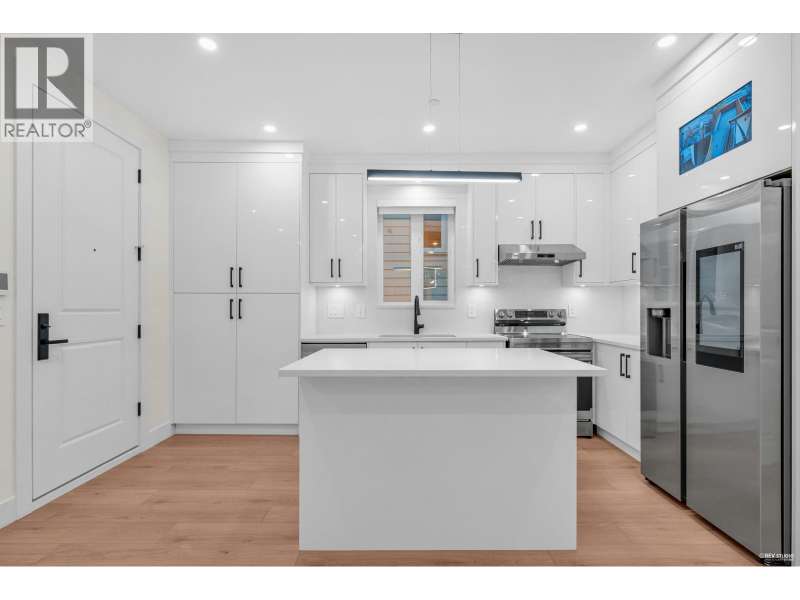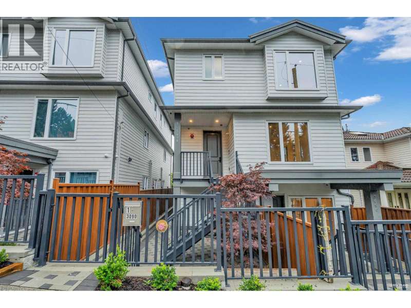NO STRATA FEE! Modern front-unit home in a brand-new triplex. This 2-storey home offers 3 spacious bedrooms and 3 full baths in Joyce-Collingwood Vancouver. Features a stylish living room with custom TV cabinet, sleek kitchen with S/S appliances and large island, plus A/C, HRV, heat pump, security system, EV-ready parking, and fenced front & back yards. Includes ensuite laundry, ample storage, and 2/5/10 warranty. Convenient location near schools, parks, and SkyTrain stations. Built by a reputable builder. Easy to show. OPEN HOUSE Saturday Nov 15. 11:30-1pm (id:58403)