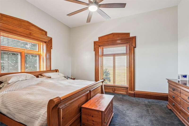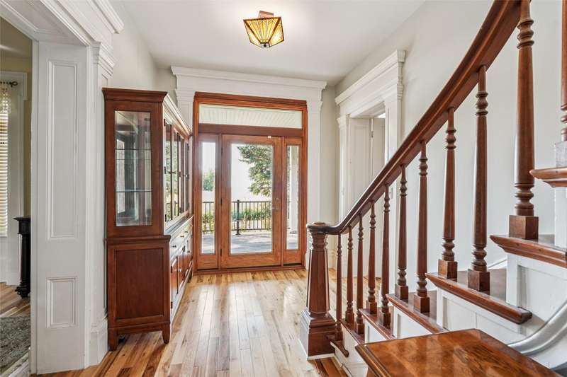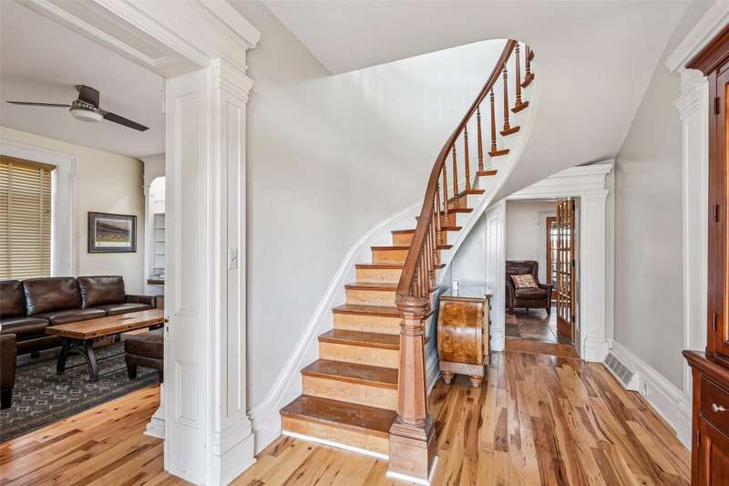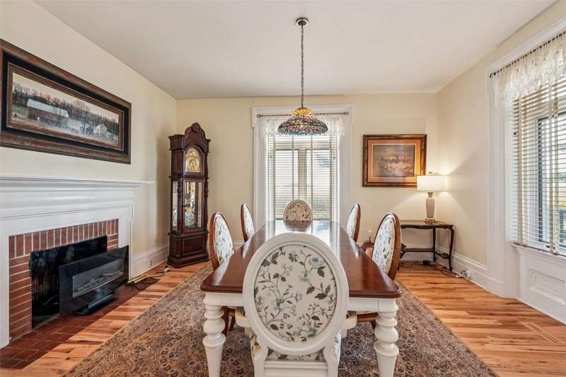 Discover a unique piece of history with this extraordinary brick home, which once served as a stop along the Underground Railroad. Beautifully blending historical character with modern comfort, the home offers 5 bedrooms, multiple living areas, and unforgettable architectural details. The front entry showcases a stunning stairwell (soon to be refinished), while ornate woodwork and curved windows highlight historic craftsmanship. Enjoy formal and casual spaces including a dining room with fireplace, sitting room with patio access, and a spacious family room with built-ins. The kitchen features an island, gas cooktop, double ovens, stainless appliances, and nearby laundry. Upstairs includes 4 bedrooms and 3 baths, highlighted by a primary suite with marble floors, double vanity, soaking tub, porcelain shower, and walk-in closet. The lower level offers additional living space with an egress bedroom, colorful glass doors, and flexible rooms. Outdoors, find a detached 2+ car garage, patio space, and the charm of a gravel drive. A rare opportunity to own a home that is both solid and storied.